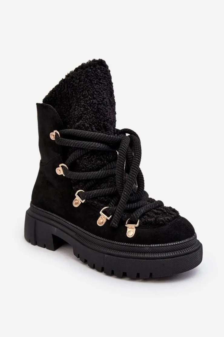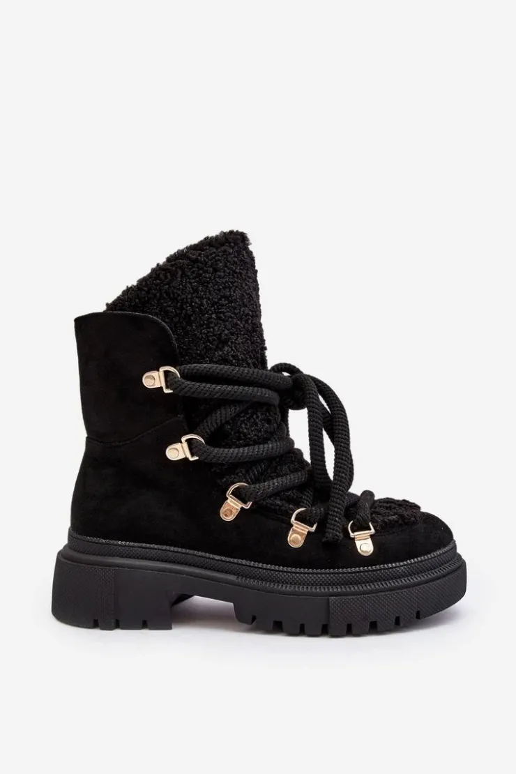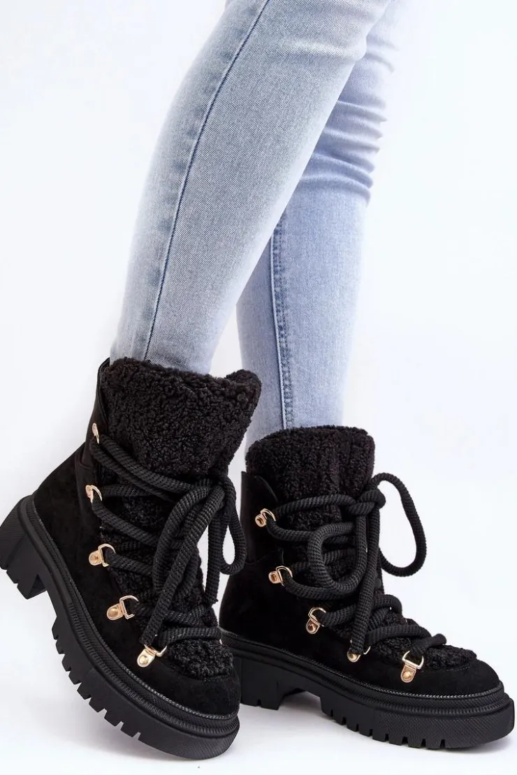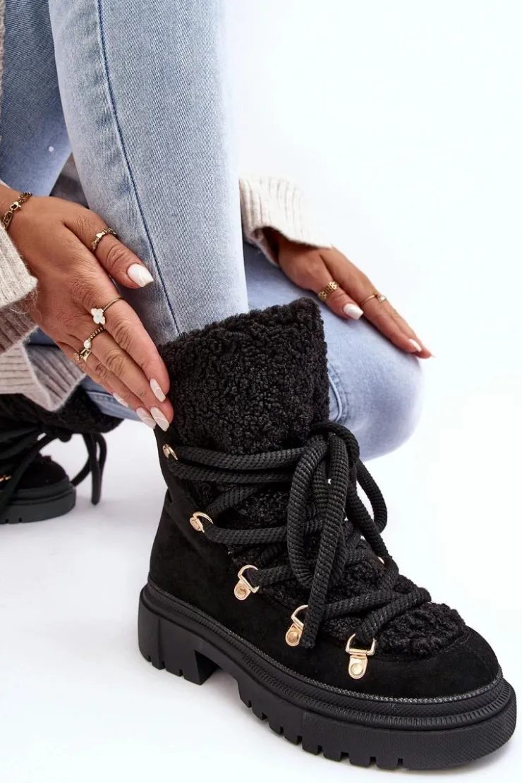 Damskie Boto Trapery Śniegowce Damskie Z Wiązaniem Czarne Shala