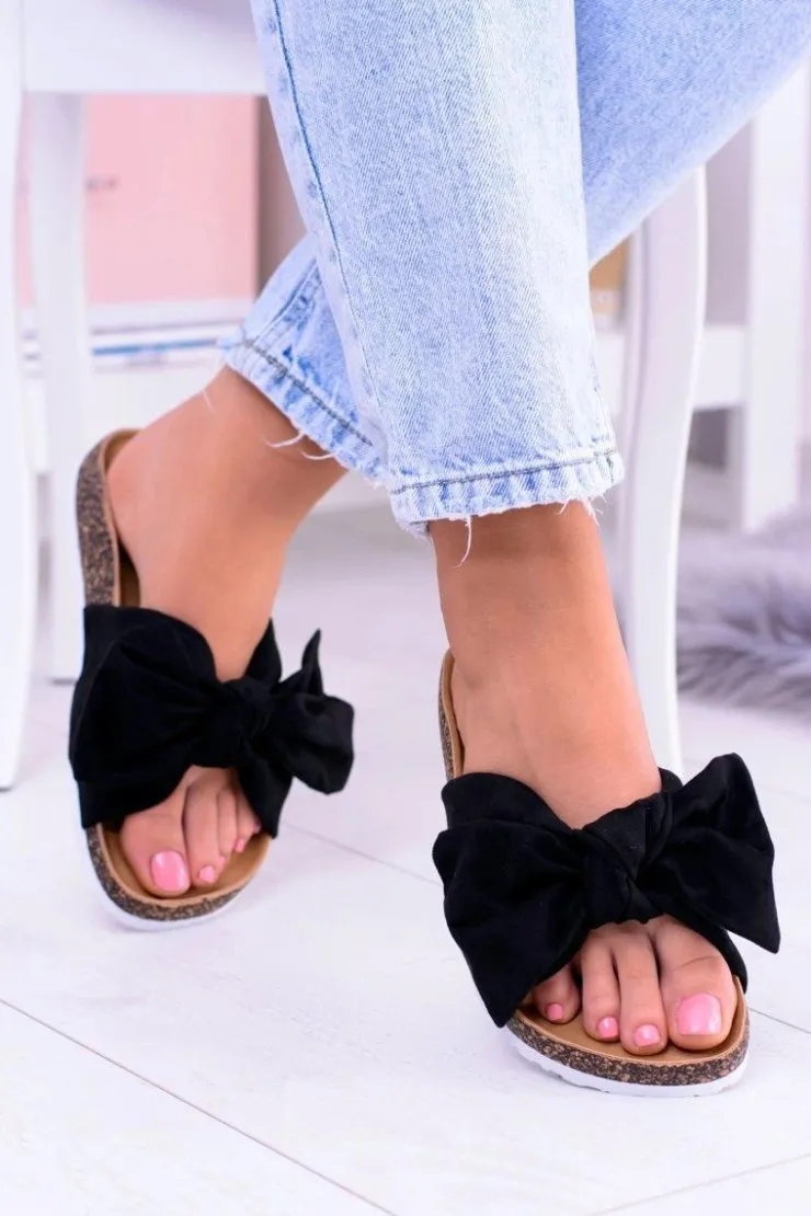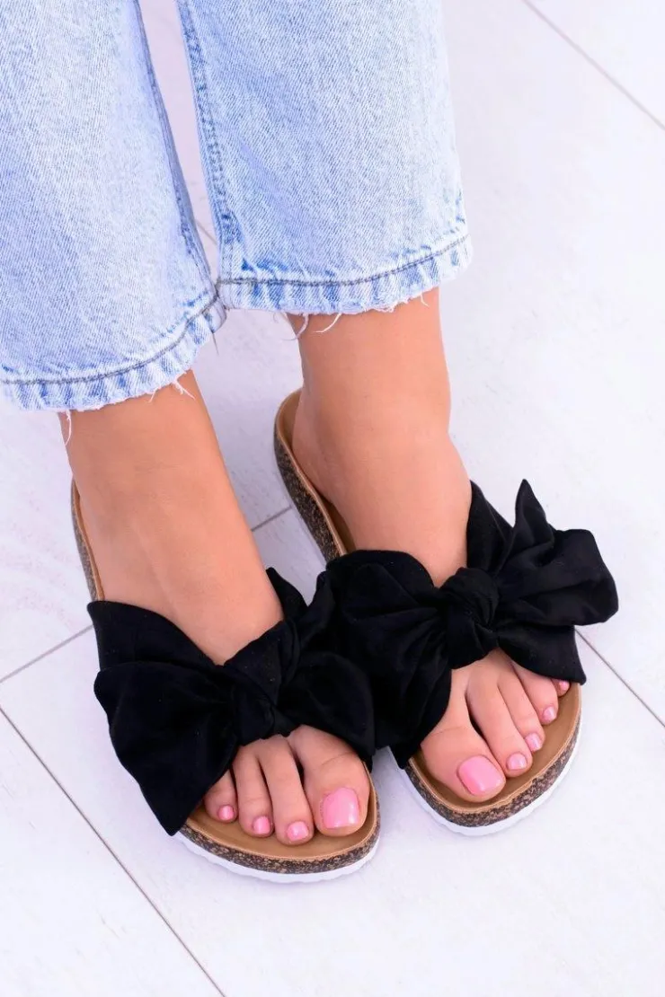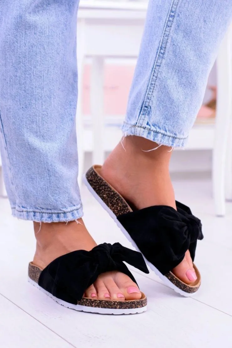 Damskie Boto Vices Damskie Czarne Klapki Na Korku Kokarda Nina