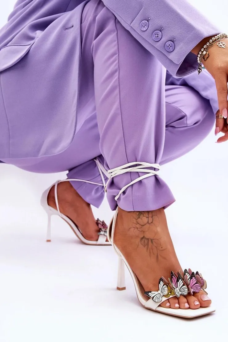 Niesamowite sandałki damskie wykonane z eko skóry posiadają na przodzie urocze motylki. Model ten jest wiązany na wysokości łydki. Dodatkowo zapiętek w tych butach jest usztywniany. Tym modelem urozmaicisz wiele stylizacji! Sandałki zostały osadzone na szpilce. Koniecznie powinny być Twoje! Przy wyborze rozmiaru prosimy sugerować się tabelą rozmiarów.