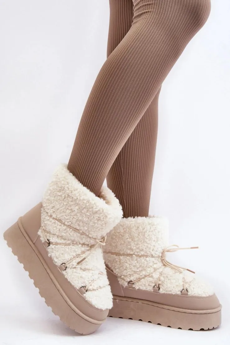 Damskie śniegowce na masywnej platformie z gumowego tworzywa. Środek ocieplony grubym futerkiem. Cholewka z wiązaniem i syntetycznym kożuszkiem. Idealne na mroźne zimowe dni! Koniecznie musisz je mieć! Model ten występuje również w rozmiarach dziecięcych! Stwórz komplet mama + dziecko! Przy wyborze rozmiaru prosimy sugerować się tabelą rozmiarów.