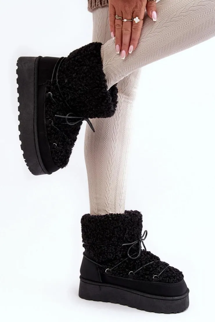 Damskie śniegowce na masywnej platformie z gumowego tworzywa. Środek ocieplony grubym futerkiem. Cholewka z wiązaniem i syntetycznym kożuszkiem. Idealne na mroźne zimowe dni! Koniecznie musisz je mieć! Model ten występuje również w rozmiarach dziecięcych! Stwórz komplet mama + dziecko! Przy wyborze rozmiaru prosimy sugerować się tabelą rozmiarów.