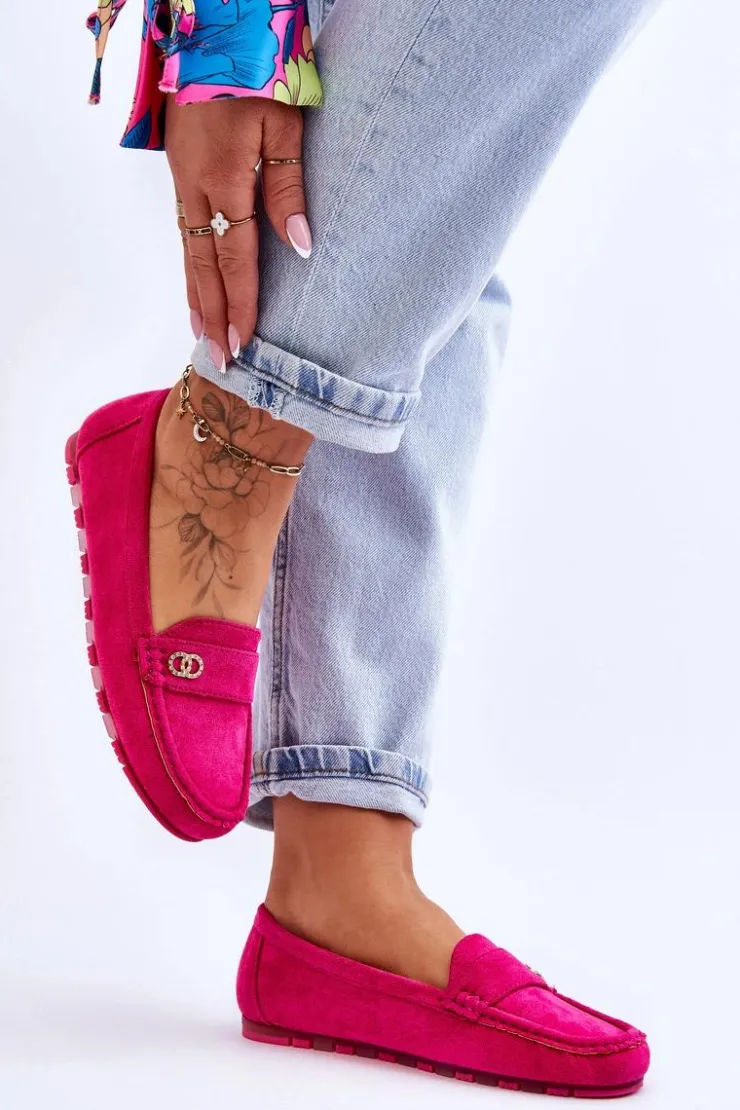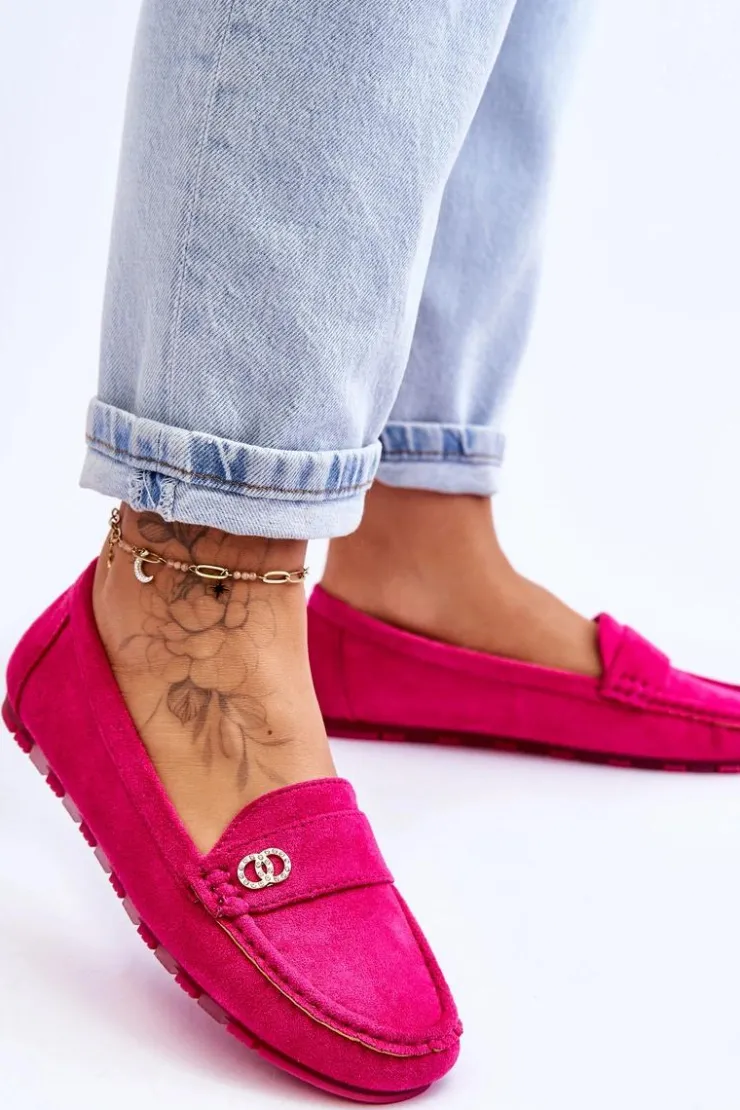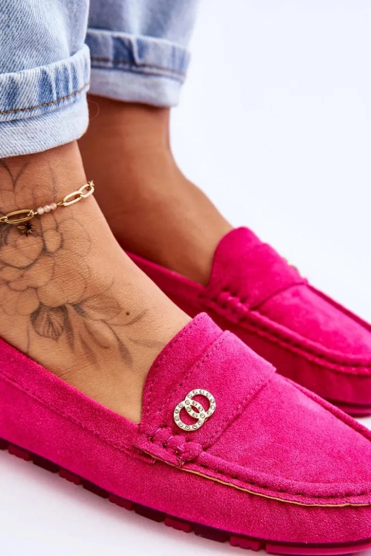 Klasyczne, wsuwane mokasyny zostały wykonane z eko zamszu. Na pasku z przodu znajduje się ozdoba z dżetami. Mokasyny zostały osadzone na platformie z gumową, antypoślizgową podeszwą. Miękka wkładka z eko skóry zapewni Ci wygodę podczas użytkowania. Świetny model do wielu wiosenno-jesiennych stylizacji! Przy wyborze rozmiaru prosimy sugerować się tabelą rozmiarów.