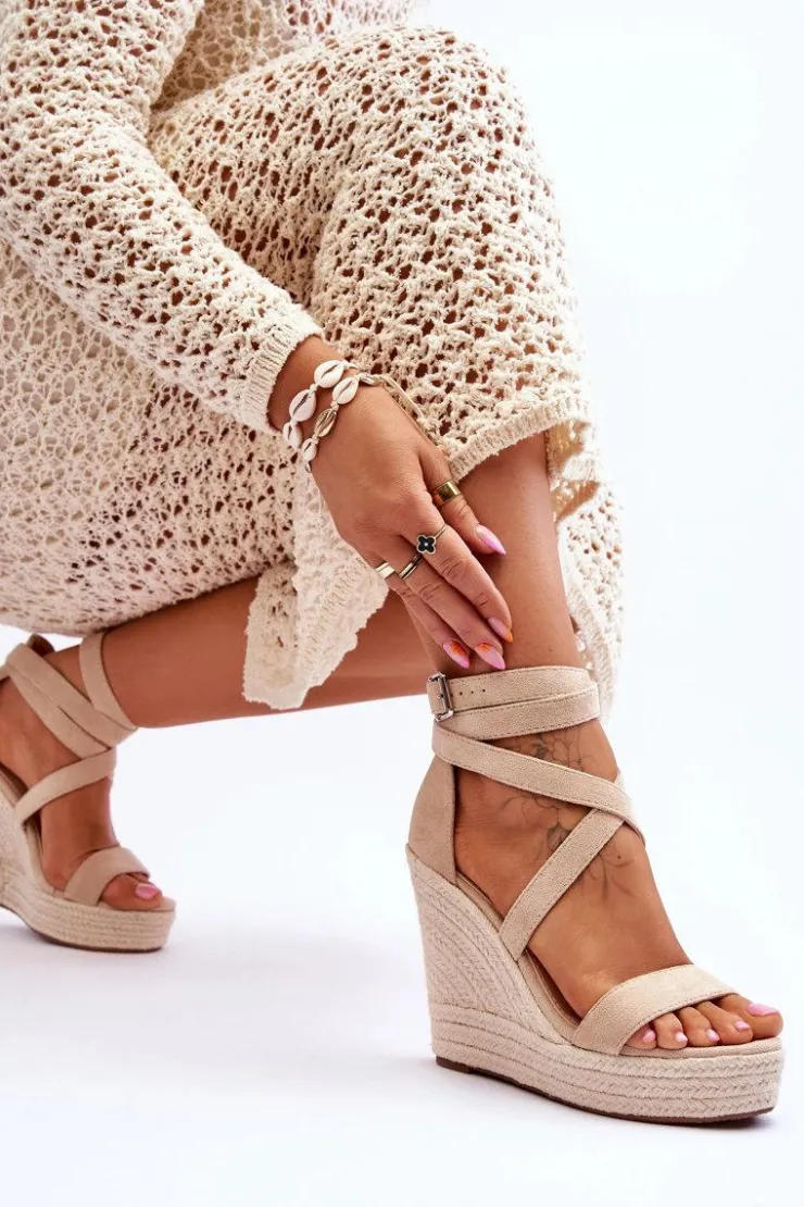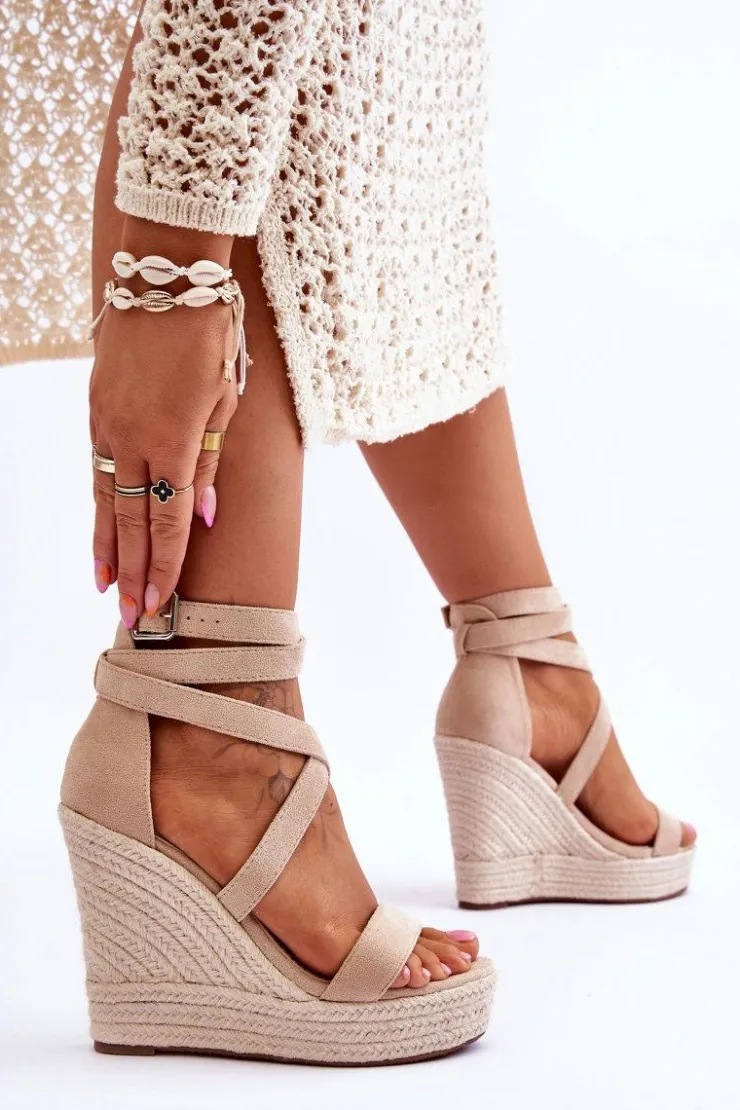 Damskie Boto Wygodne Sandały Na Wysokim Koturnie Beżowe Lemira