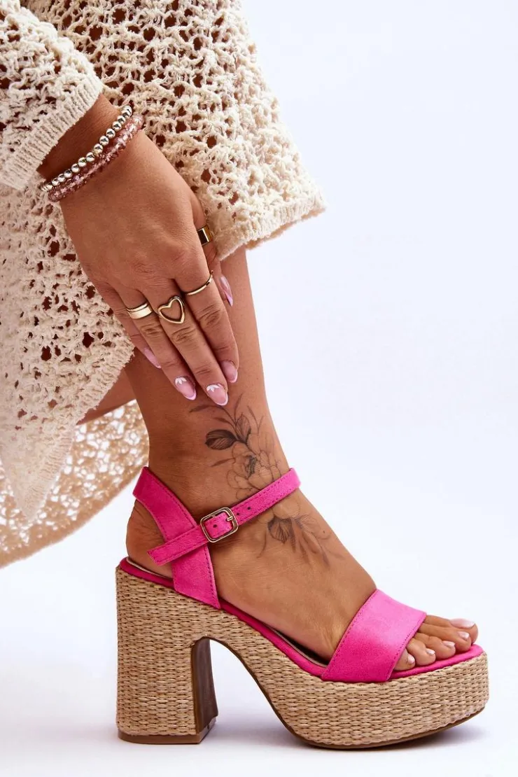 Świetne sandałki na masywnym obcasie w postaci słupka oraz platformie. Wykonane z przyjemnej w dotyku ekologicznej skóry. Sandałki posiadają odkryty, zaokrąglony nosek. Zapinane wokół kostki na regulowany pasek ze sprzączką. Ten model z pewnością sprawdzi się w wielu stylizacjach! Przy wyborze rozmiaru prosimy sugerować się tabelą rozmiarów.