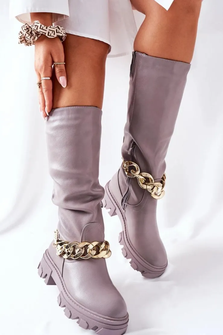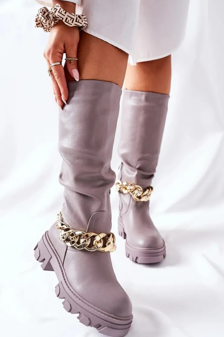 Kozaki do kolana wykonane ze skóry ekologicznej. Wnętrze ocieplane kocem obuwniczym.