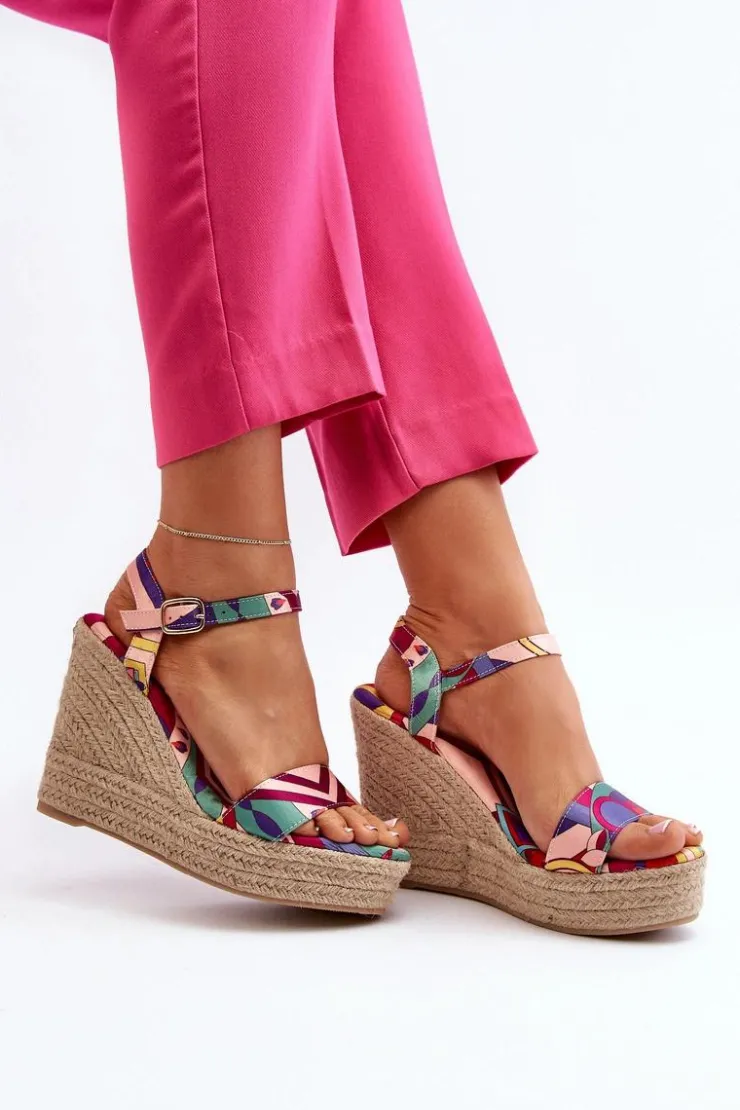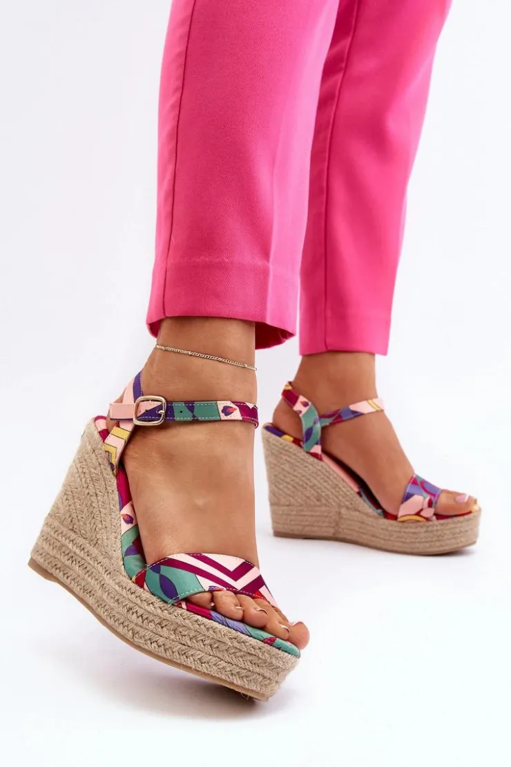 Sandały damskie na platformie i koturnie z jutową plecionką to wyjątkowy dodatek do letnich stylizacji. Zapinane na regulowany pasek ze sprzączką, zapewniają doskonałe dopasowanie. Ich wzorzysty design i wykonanie z materiału tekstylnego dodają oryginalności i świeżości każdej letniej kreacji. Idealnie komponują się zarówno z sukienkami, jak i spódnicami oraz spodniami! Przy wyborze rozmiaru prosimy sugerować się tabelą rozmiarów.