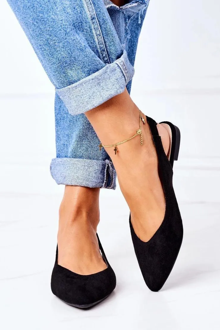 Eleganckie baleriny wykonane z miękkiego eko zamszu. Wszyty ściągacz ułatwi zakładanie, a antypoślizgowa podeszwa to gwarancja komfortu. Podczas wyboru rozmiaru prosimy sugerować się tabelą rozmiarów.