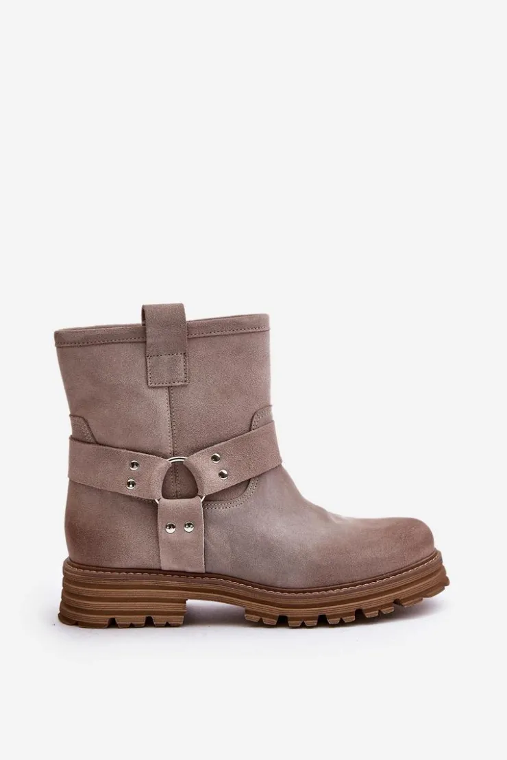 Botki wykonane z naturalnego zamszu to idealny wybór na każdą okazję. Osadzone na płaskim obcasie, zapewniają komfort i stabilność podczas chodzenia. Zaokrąglone noski dodają subtelnego charakteru. Model zapinany na zamek, co ułatwia zakładanie. Cholewka ozdobiona efektownym połączeniem pasków, które dodają stylowego akcentu. Te botki świetnie sprawdzą się w codziennych stylizacjach, łącząc elegancję z wygodą. Przy wyborze rozmiaru prosimy sugerować się tabelą rozmiarów.