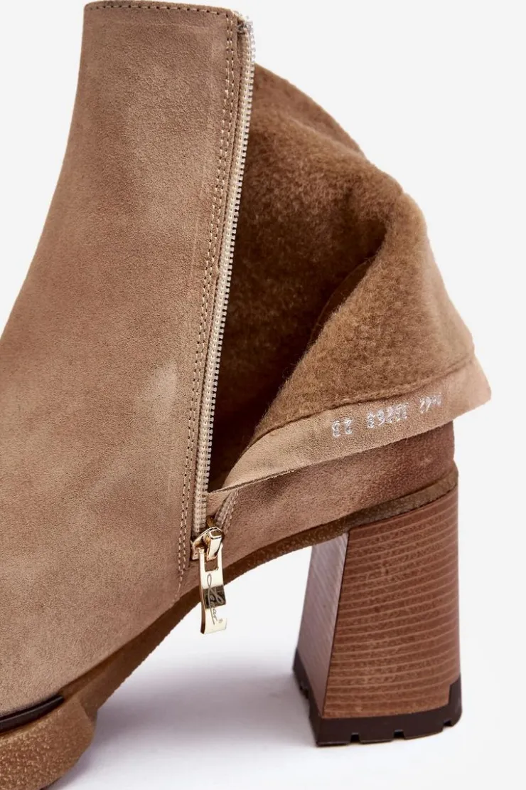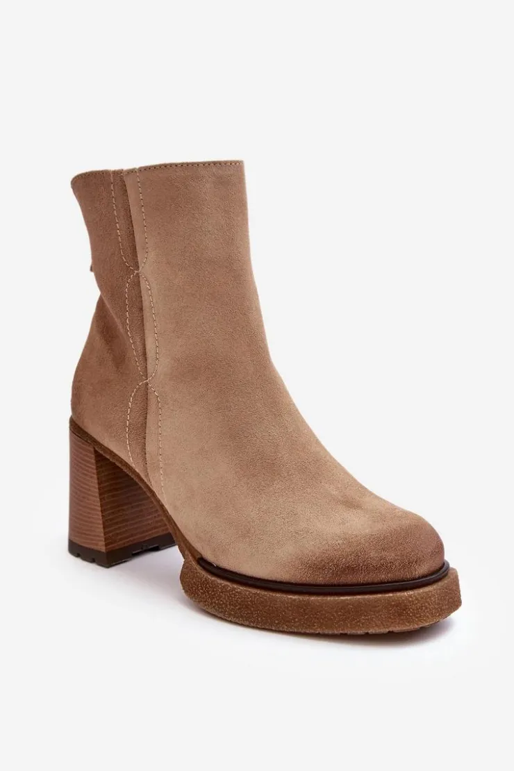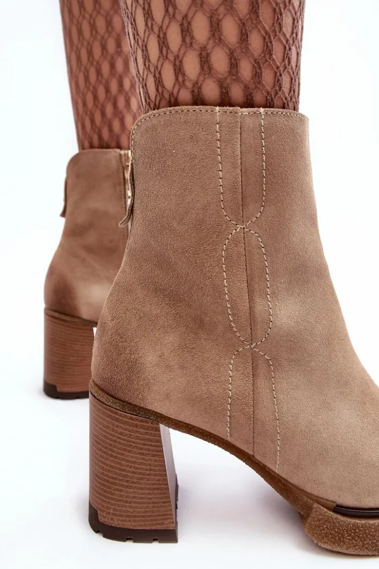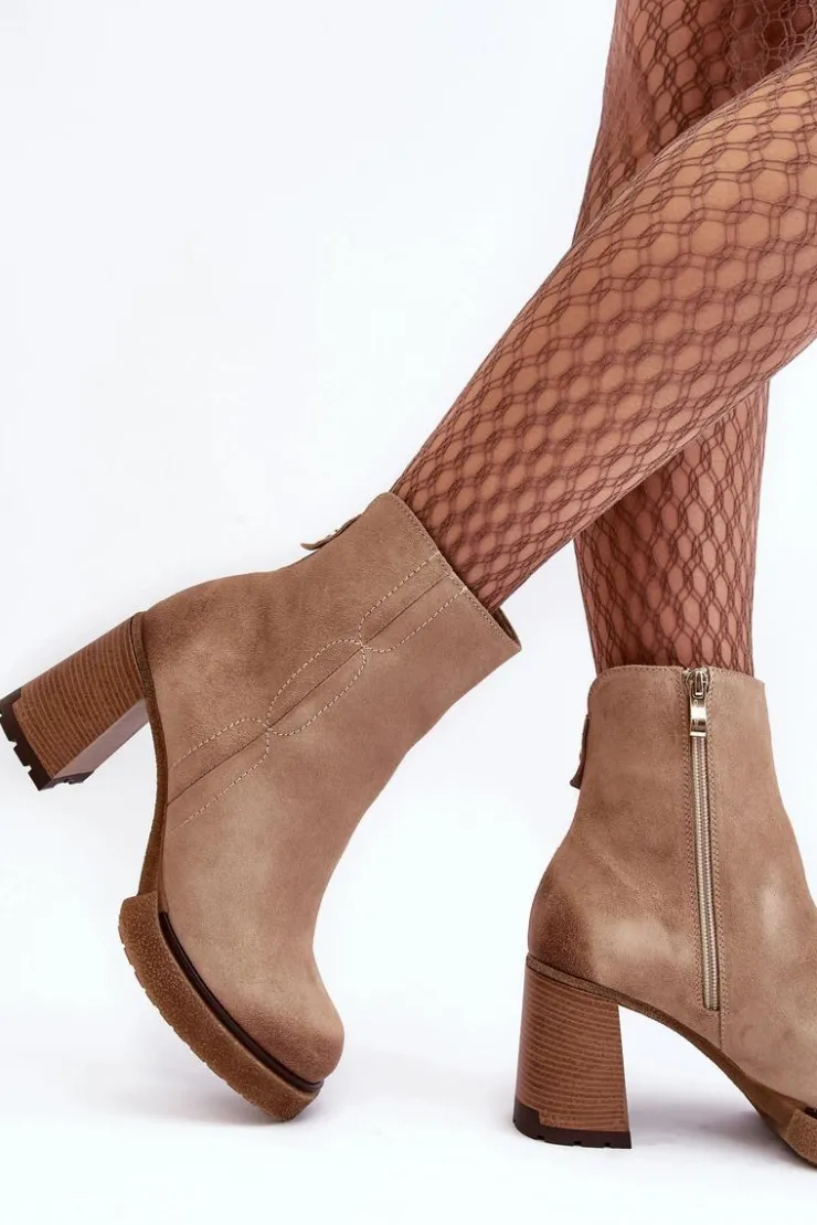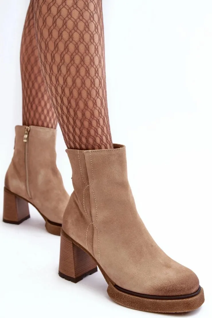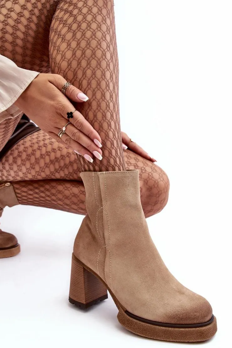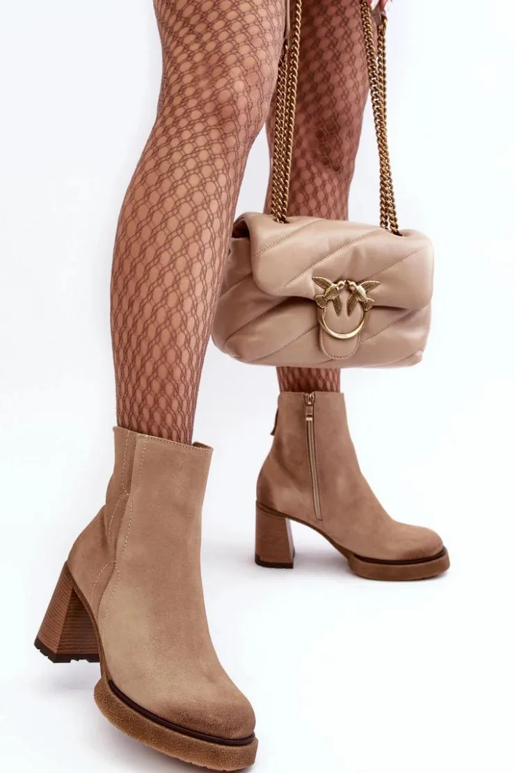 Damskie Boto Zamszowe Botki Damskie Na Słupku Beżowe Lemar Remilda