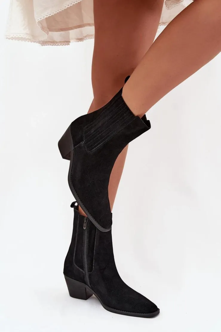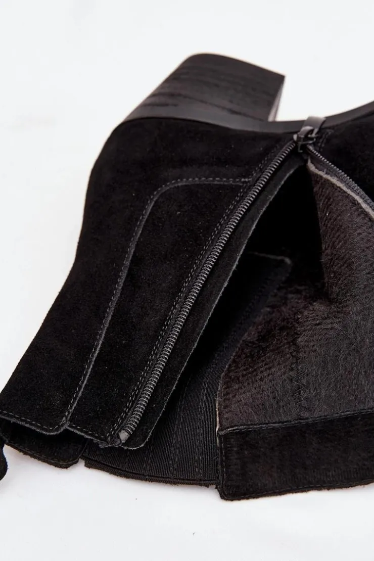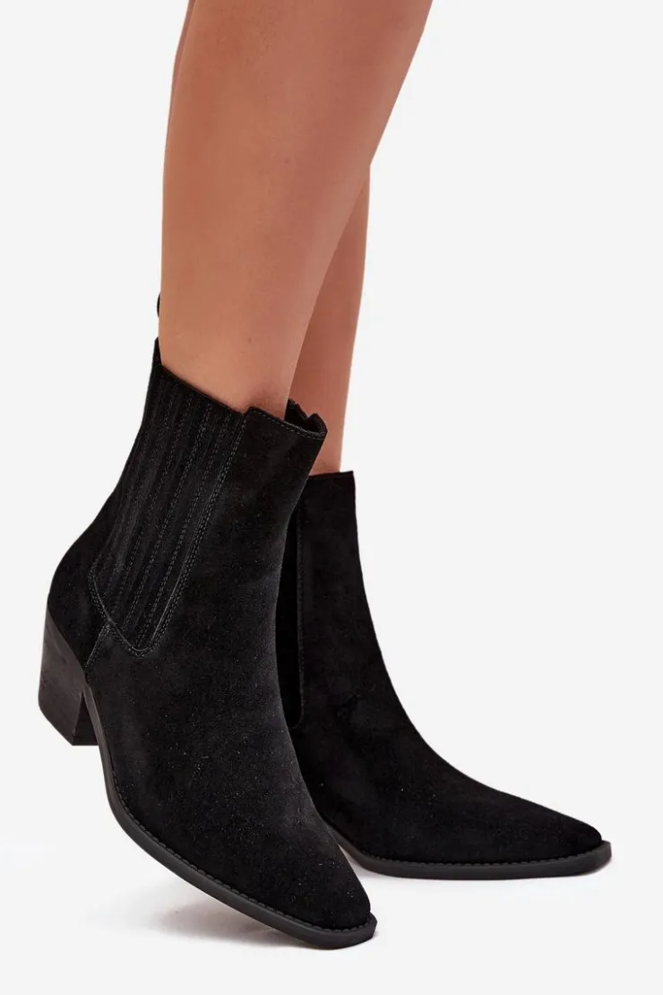 Zamszowe botki damskie na słupku ocieplane czarne Arelia