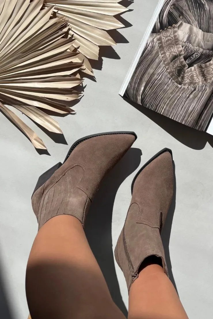 Botki kowbojki damskie z naturalnego zamszu to wyjątkowa propozycja, która łączy styl i komfort. Szpiczaste noski nadają im charakterystycznego wyglądu, a ocieplenie kocem obuwniczym zapewnia ciepło w chłodniejsze dni. Zamek błyskawiczny umożliwia wygodne zakładanie, a obcas słupek zapewnia stabilność i wygodę podczas chodzenia. Idealne do codziennych stylizacji, te botki dodadzą wyjątkowego akcentu każdemu lookowi. Przy wyborze rozmiaru prosimy sugerować się tabelą rozmiarów.