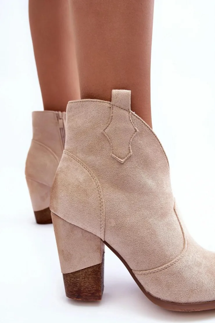 Botki w stylu kowbojek zostały wykonane z eko zamszu. Osadzone na obcasie w postaci słupka. Zapinane na suwak po wewnętrznej stronie. Noski w szpic optycznie wysmuklą nogi. Środek ocieplony kocem obuwniczy. Model ten będzie idealnym dopełnieniem jesienno-zimowych stylizacji! Przy wyborze rozmiaru prosimy sugerować się tabelą rozmiarów.