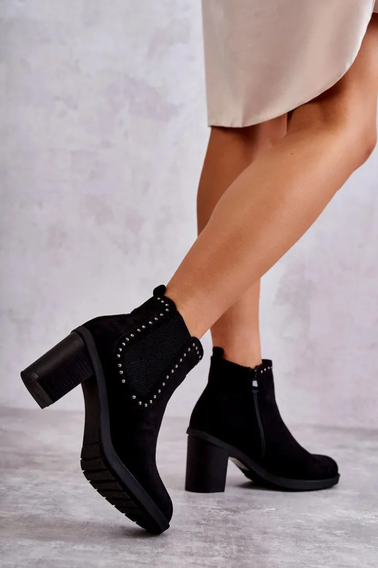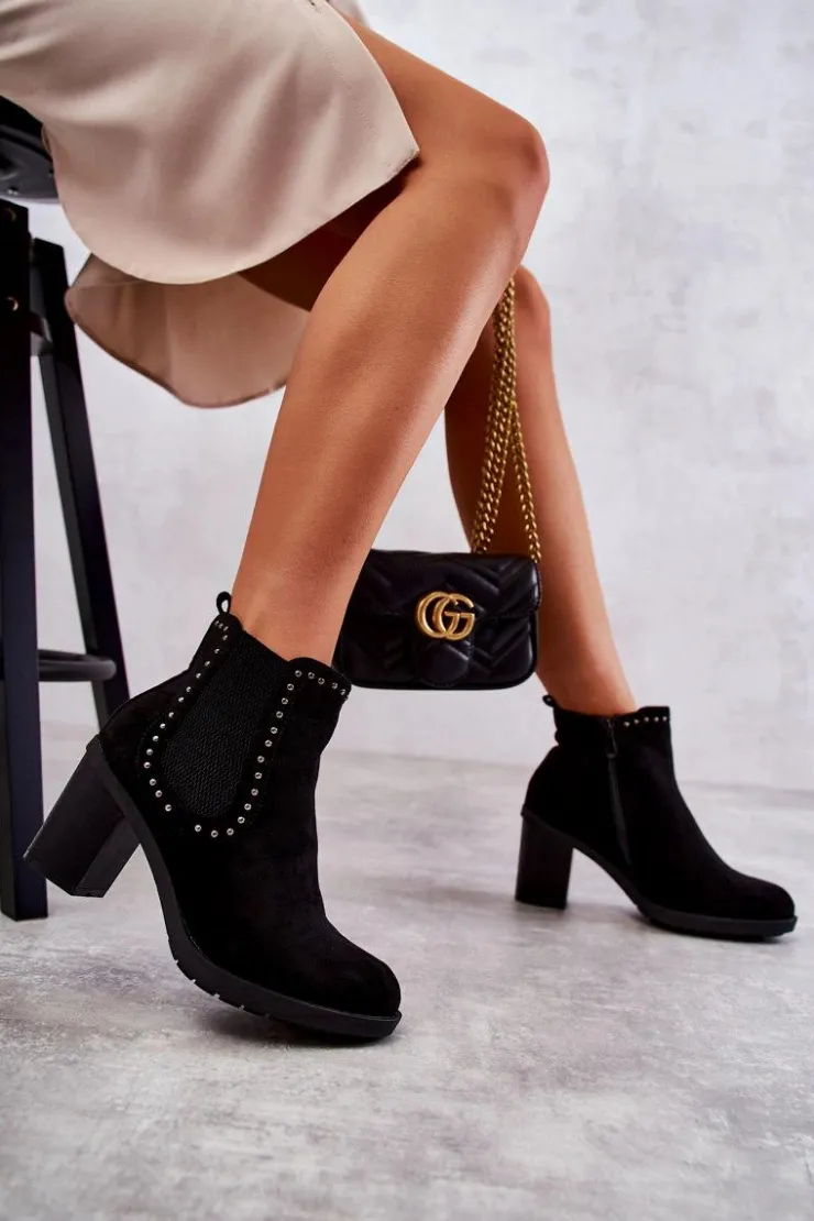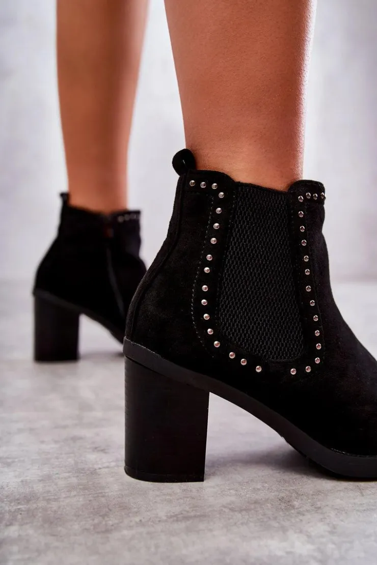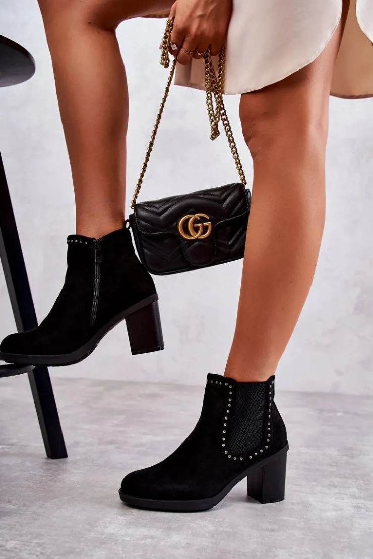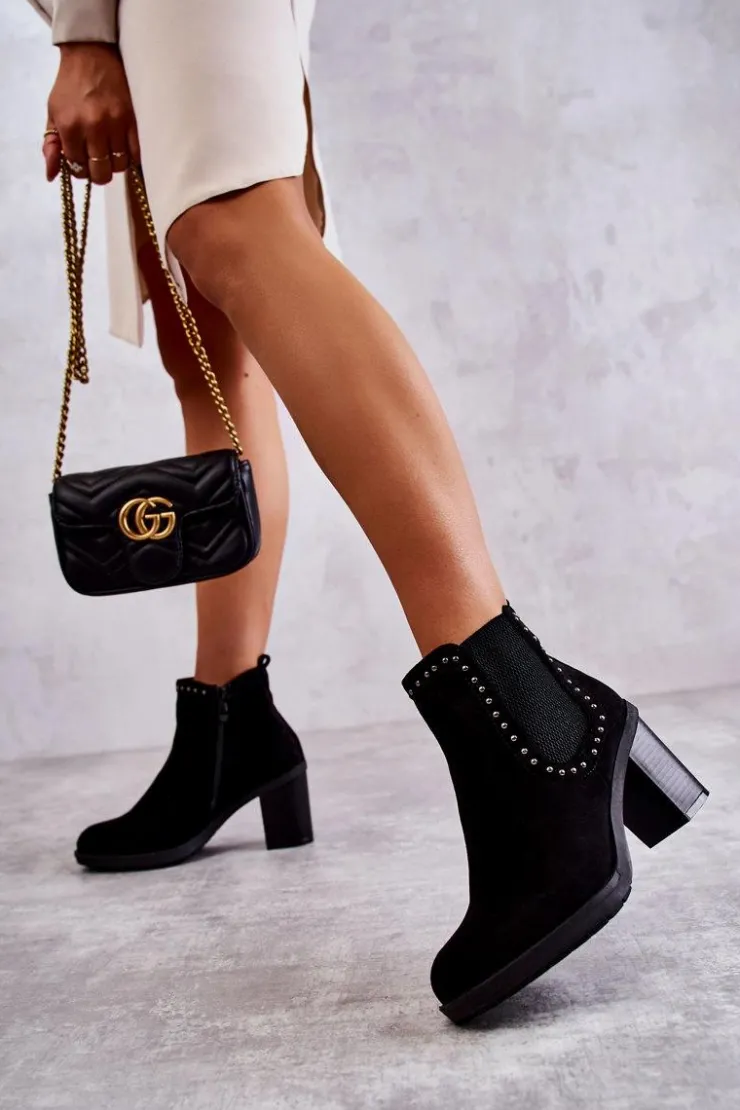 Damskie Boto Zamszowe Botki Z Ćwiekami Na Słupku Czarne Cambia