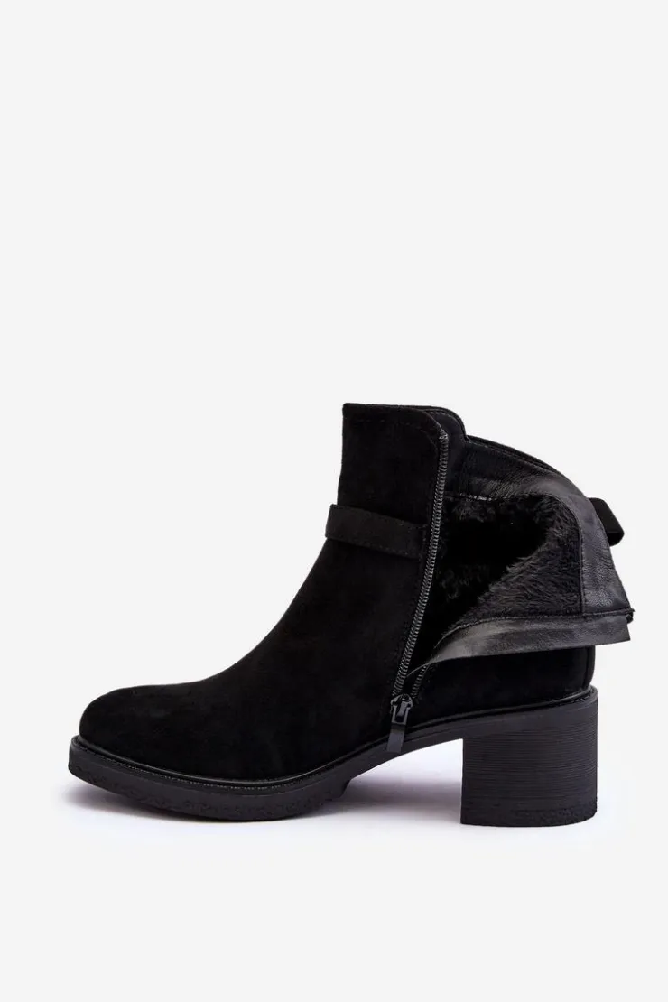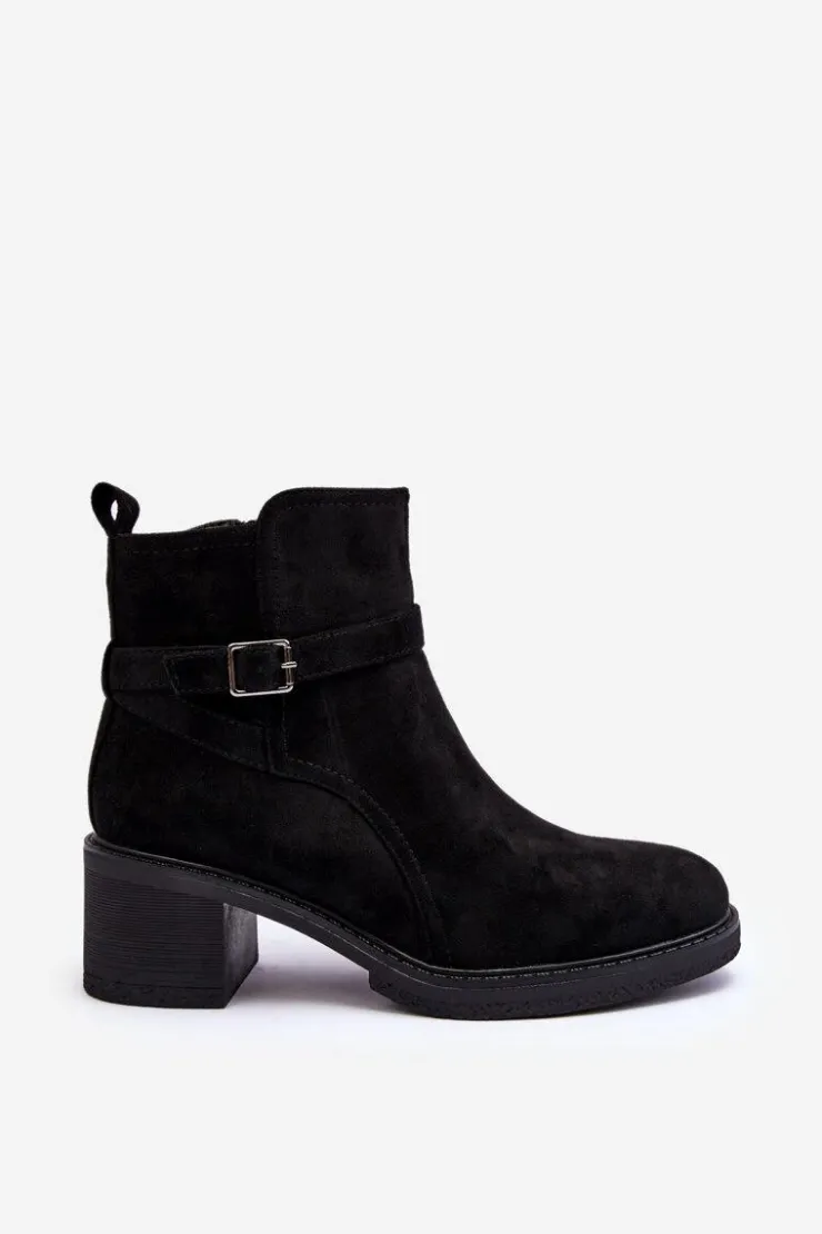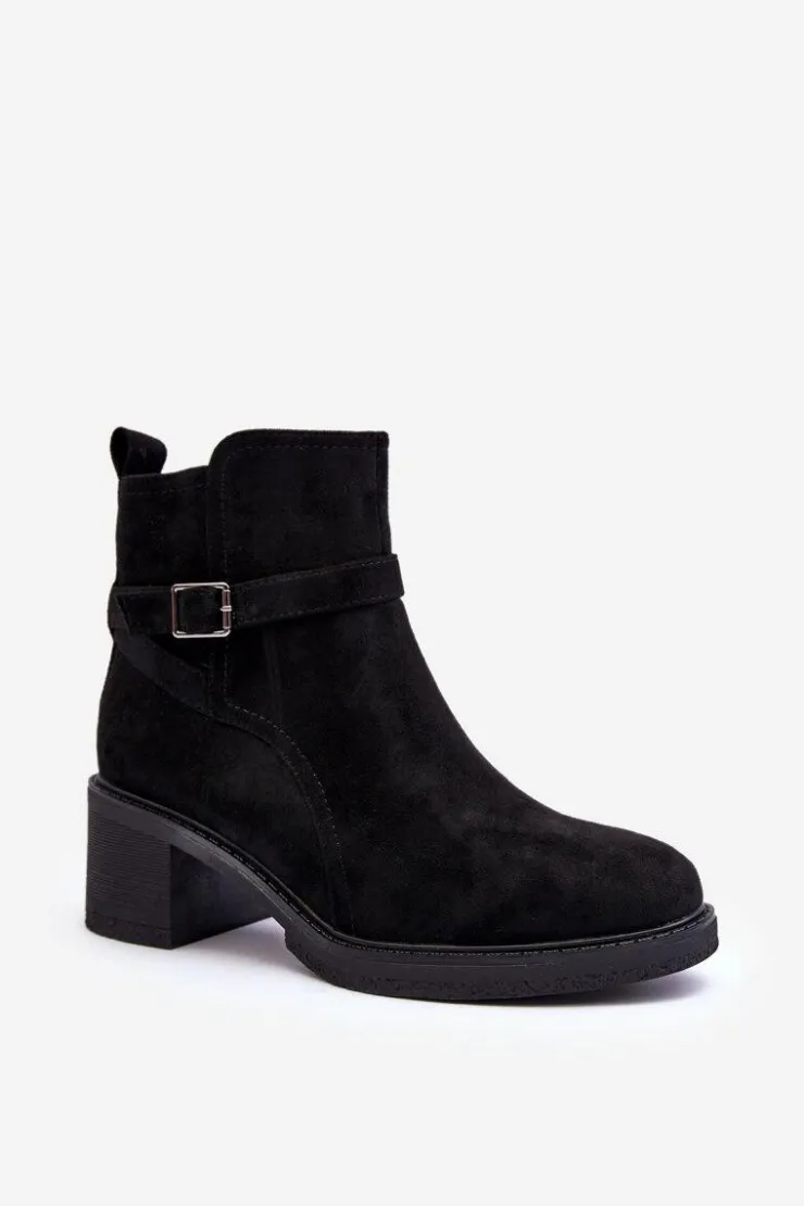 Damskie Boto Zamszowe Botki Z Klamrą Czarne Neste