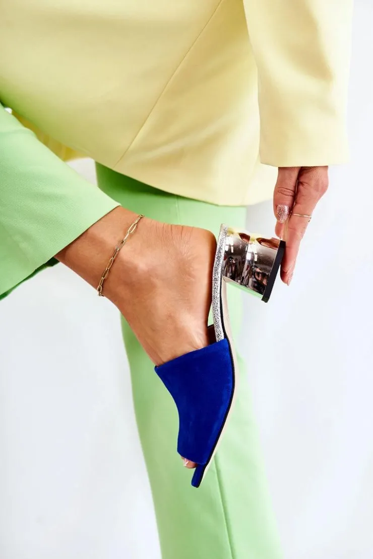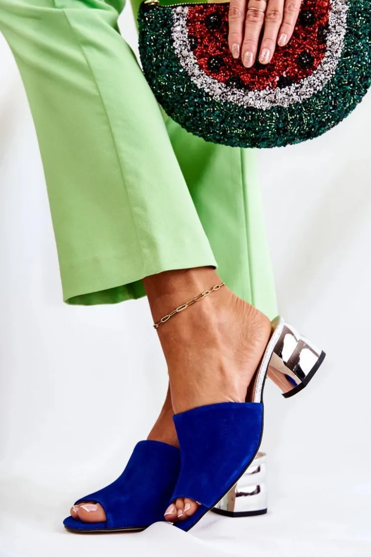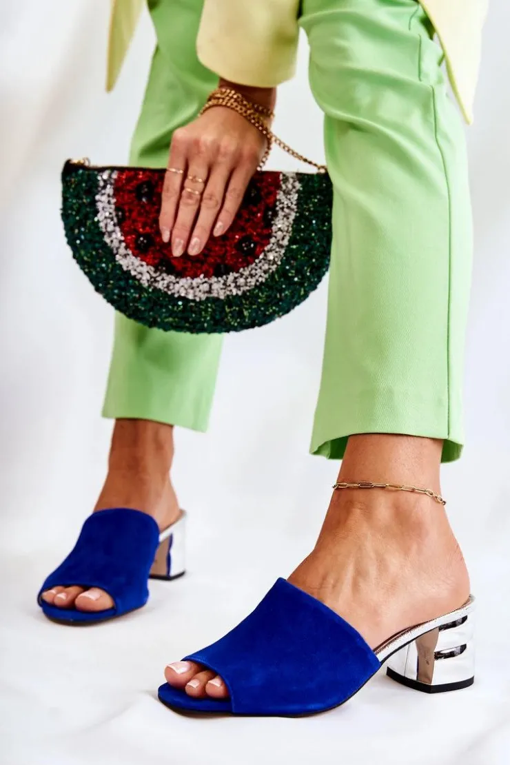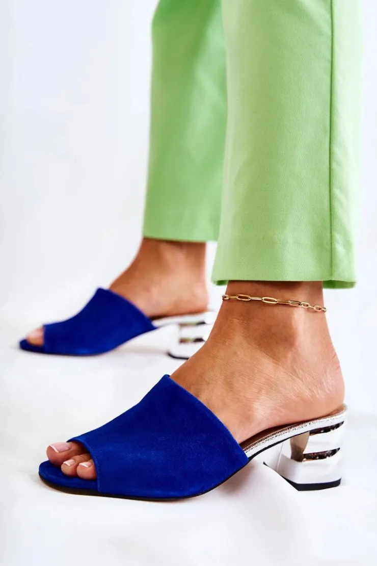 Modne, a zarazem wygodne klapki damskie zostały osadzone na obcasie w postaci klocka. Cholewka wykonana z naturalnego zamszu. Nosek odkryty, zaokrąglony. Miękka wkładka została wykonana z naturalnej skóry. Model klasyczny, wsuwany. Świetnie sprawdzą się do wielu stylizacji. Idealnie dopasują się do tęgości nogi, dzięki skórzanej wyściółce. Spraw sobie radość kupując nową parę butów, które będą idealne na letnie dni! Przy wyborze rozmiaru prosimy sugerować się tabelą rozmiarów.