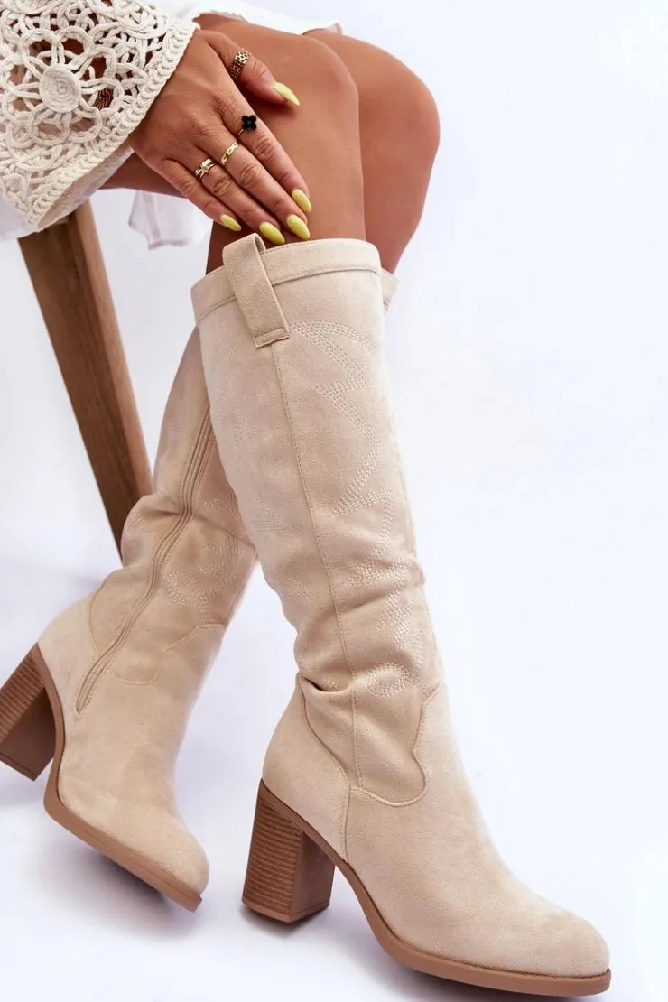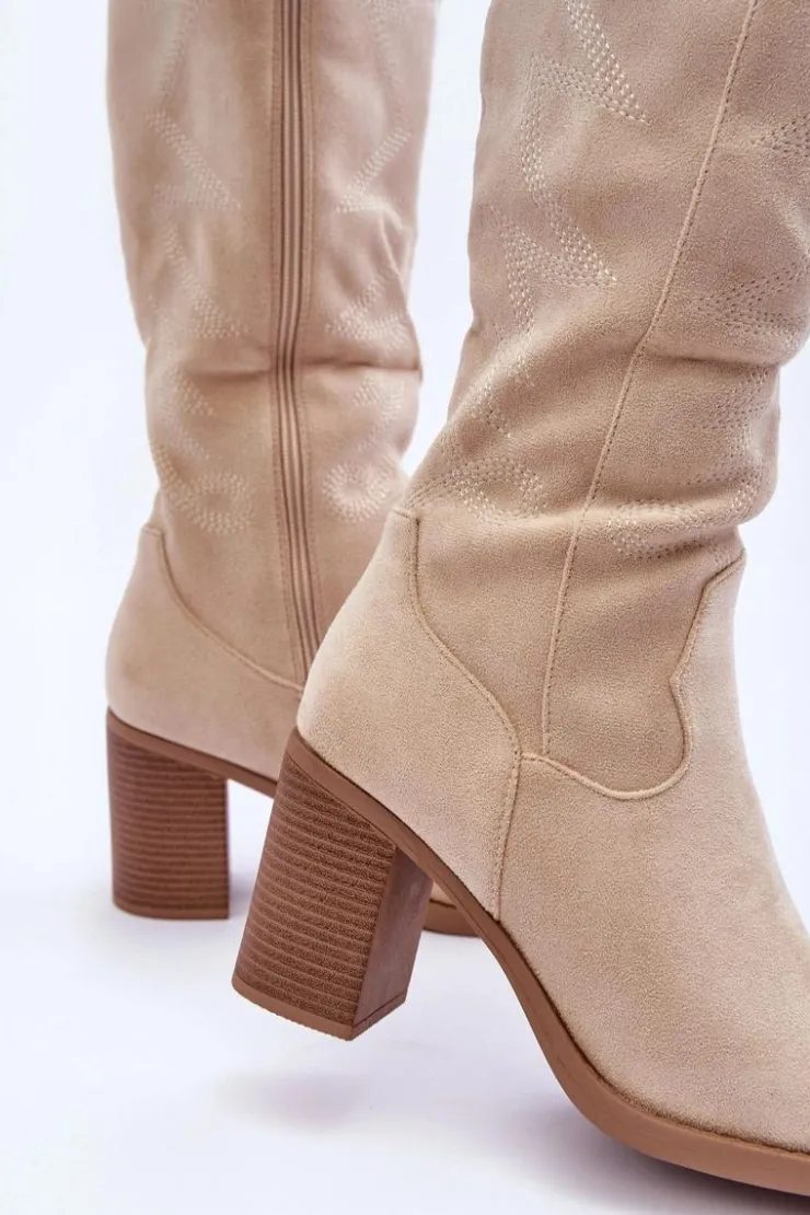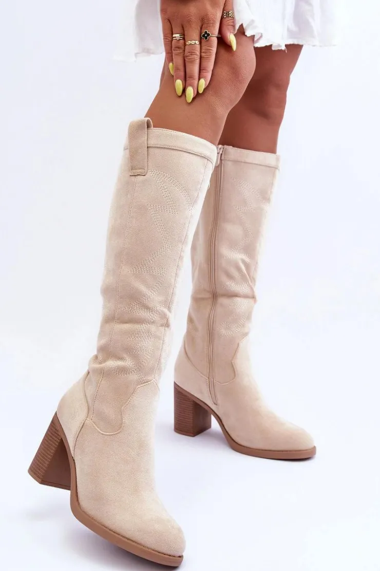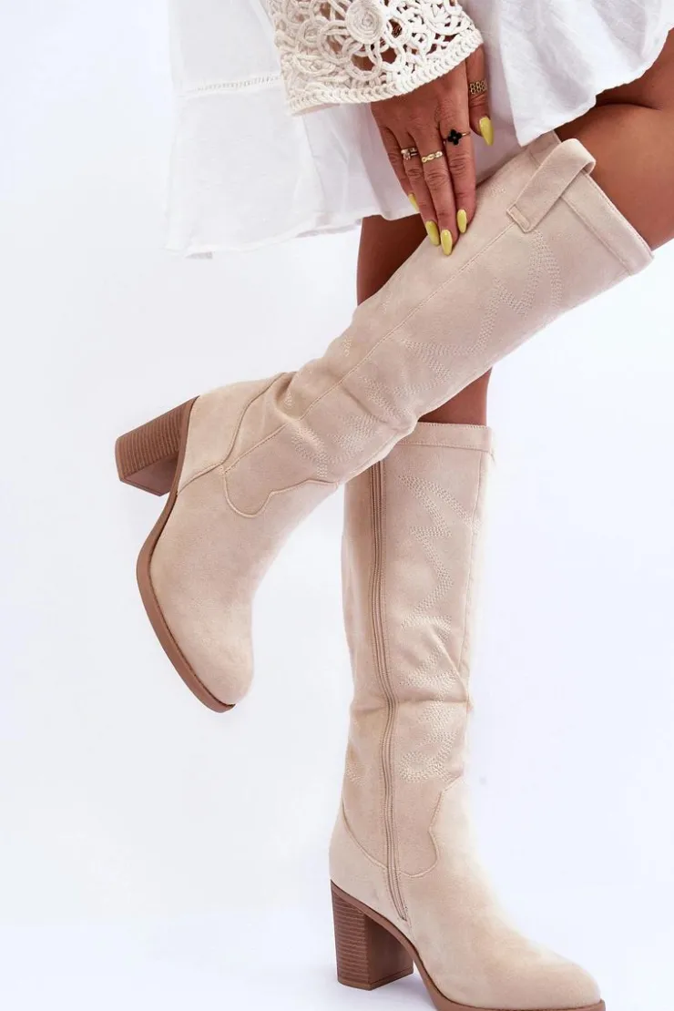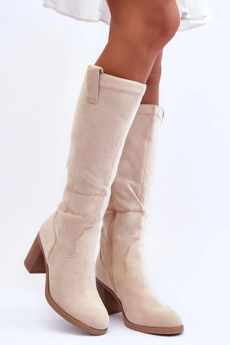 Kozaki damskie zostały wykonane z eko zamszu. Osadzone na obcasie w postaci słupka. Zapinane na suwak z boku. Dodatkowo zapiętek w tym obuwiu został usztywniony. Miękka wkładka zapewni komfortowe użytkowanie. Model ten świetnie sprawdzi się w wielu stylizacjach! Przy wyborze rozmiaru prosimy sugerować się tabelą rozmiarów.