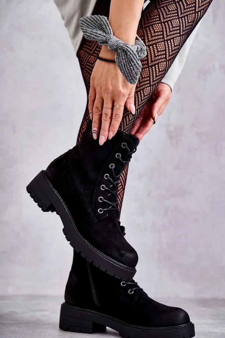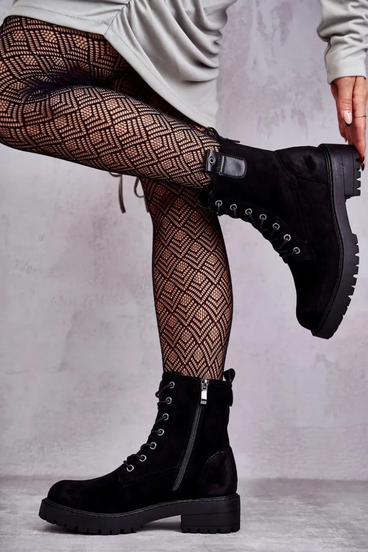 Botki damskie o klasycznym fasonie świetnie sprawdzą się na jesienne, chłodne dni. Posiadają wewnątrz ocieplenie w postaci koca obuwniczego. Osadzone na płaskim, stabilnym obcasie ze żłobieniami. Dodatkowo posiadają usztywniany zapiętek. Model z suwakiem na boku cholewki oraz sznurowaniem. Idealny model do pracy czy szkoły. Przy wyborze rozmiaru prosimy sugerować się tabelą rozmiarów.