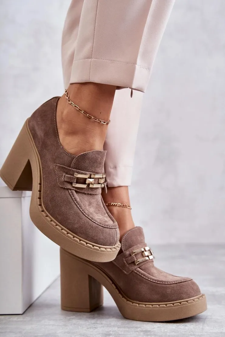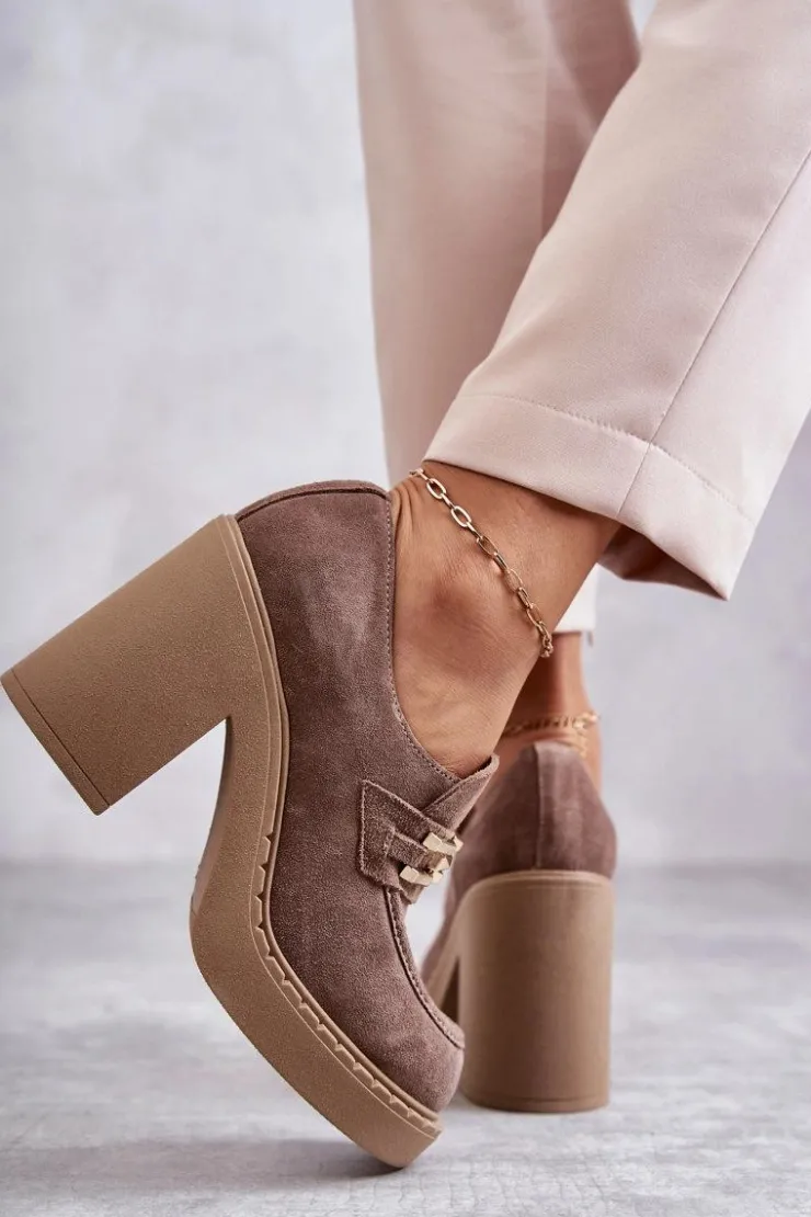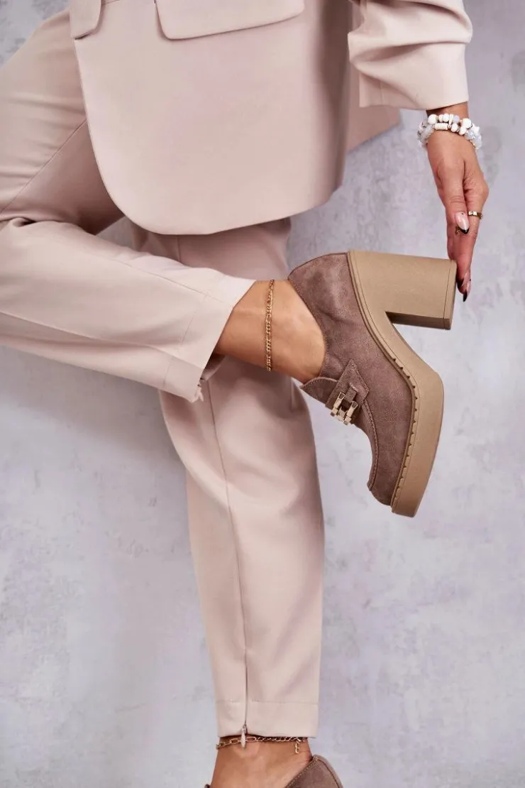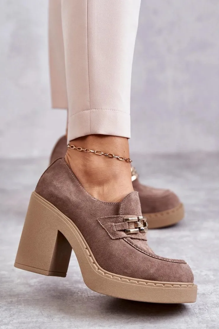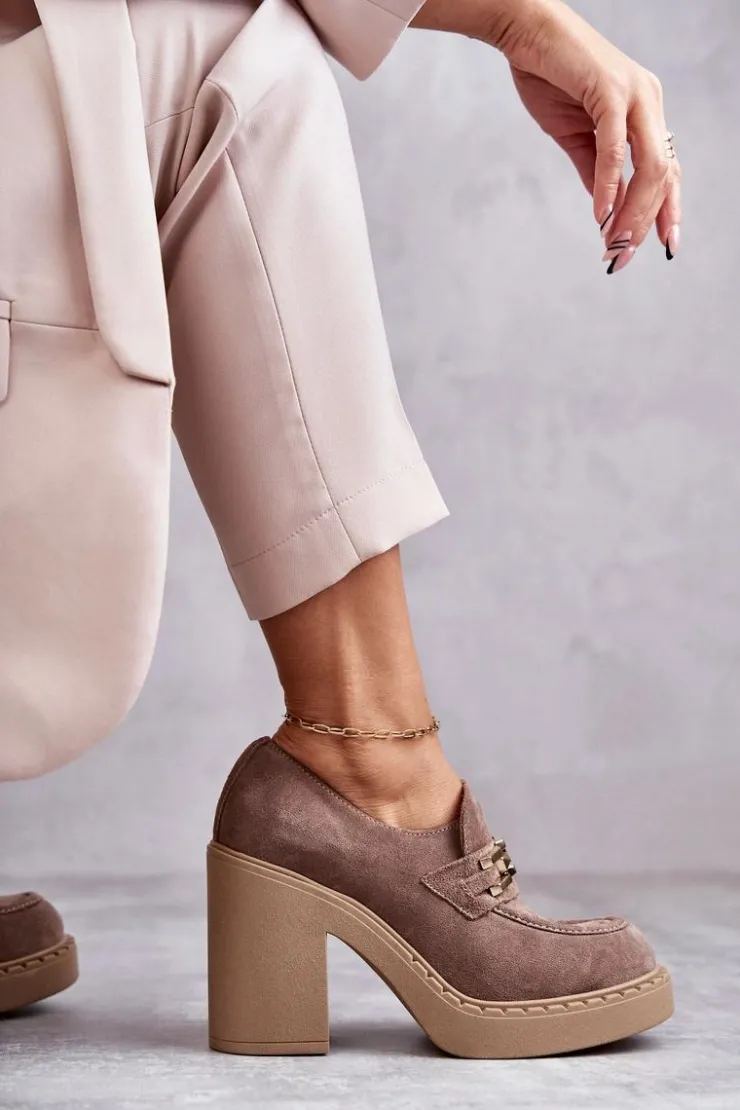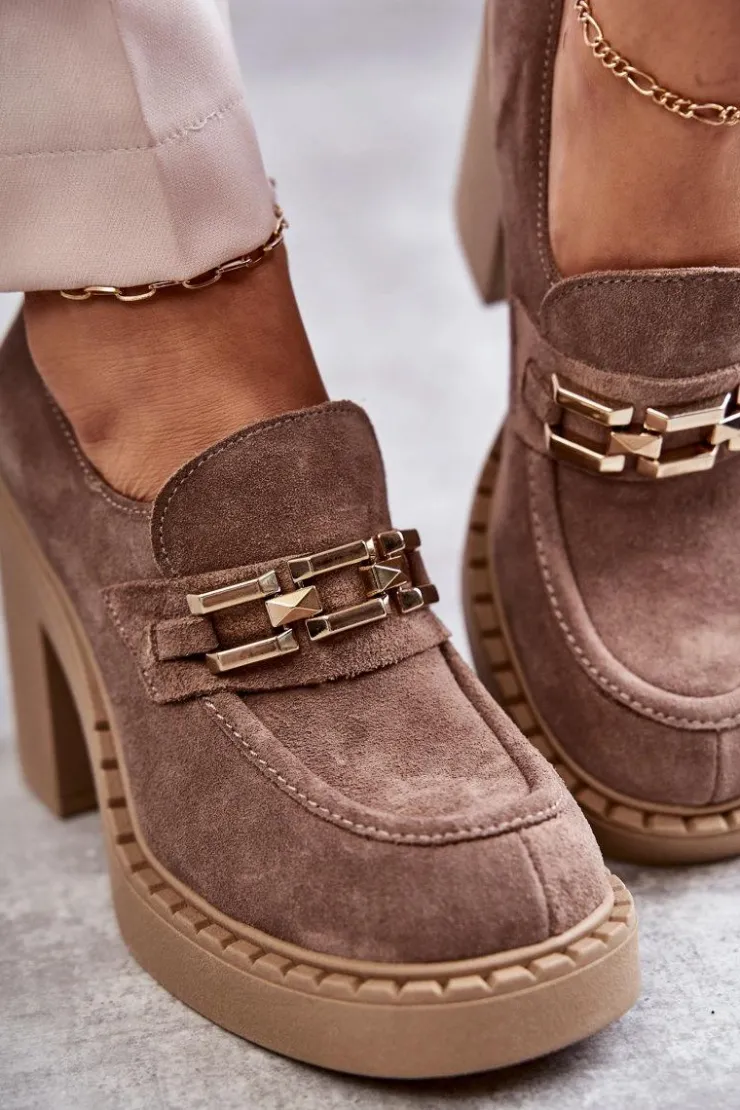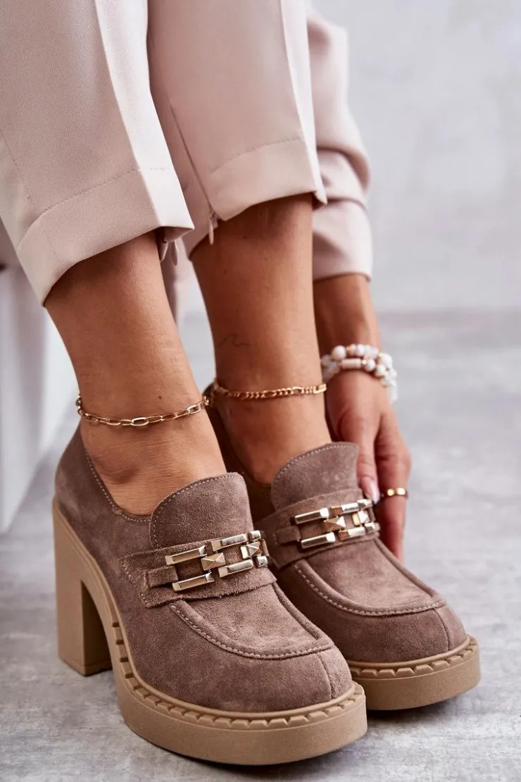 Cudowne półbuty na obcasie w postaci masywnego słupka z platformą. Cholewka oraz wkładka wykonane ze skóry naturalnej. Podeszwa wykonana z gumowego tworzywa jest antypoślizgowa. Ozdoba na przodzie dodaje tym butom elegancji. Model ten posiada usztywniany zapiętek, który dodatkowo stabilizuje stopę. Pod językiem znajduje się gumka, która sprawi, że but będzie idealnie dopasowany do stopy. Przy wyborze rozmiaru prosimy sugerować się tabelą rozmiarów.