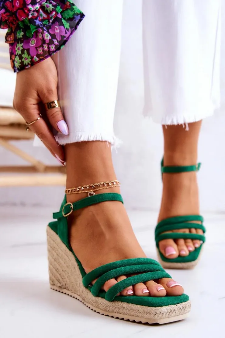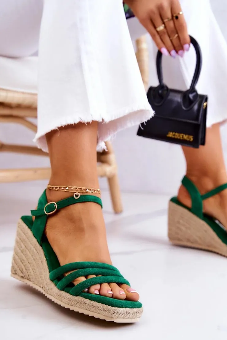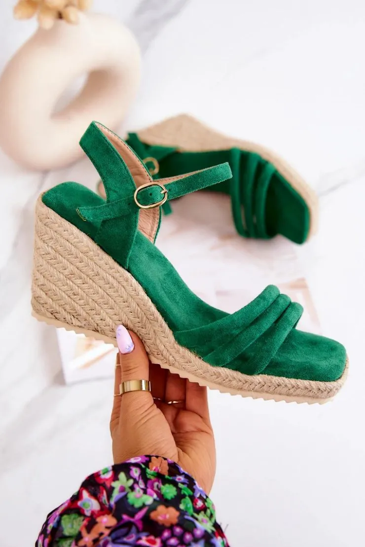 Damskie Boto Zamszowe Sandałki Na Koturnie Zielone Louisiana