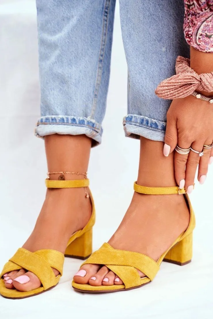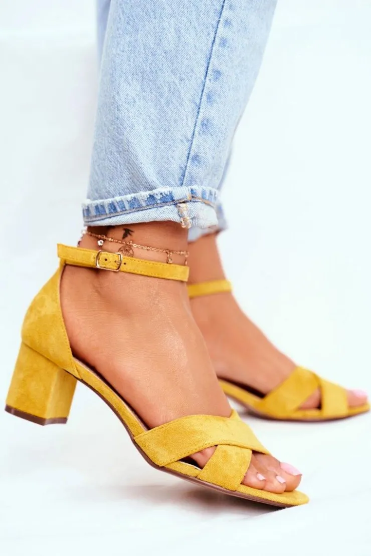 Damskie Boto Zamszowe Sandałki na Słupku Żółte Nela