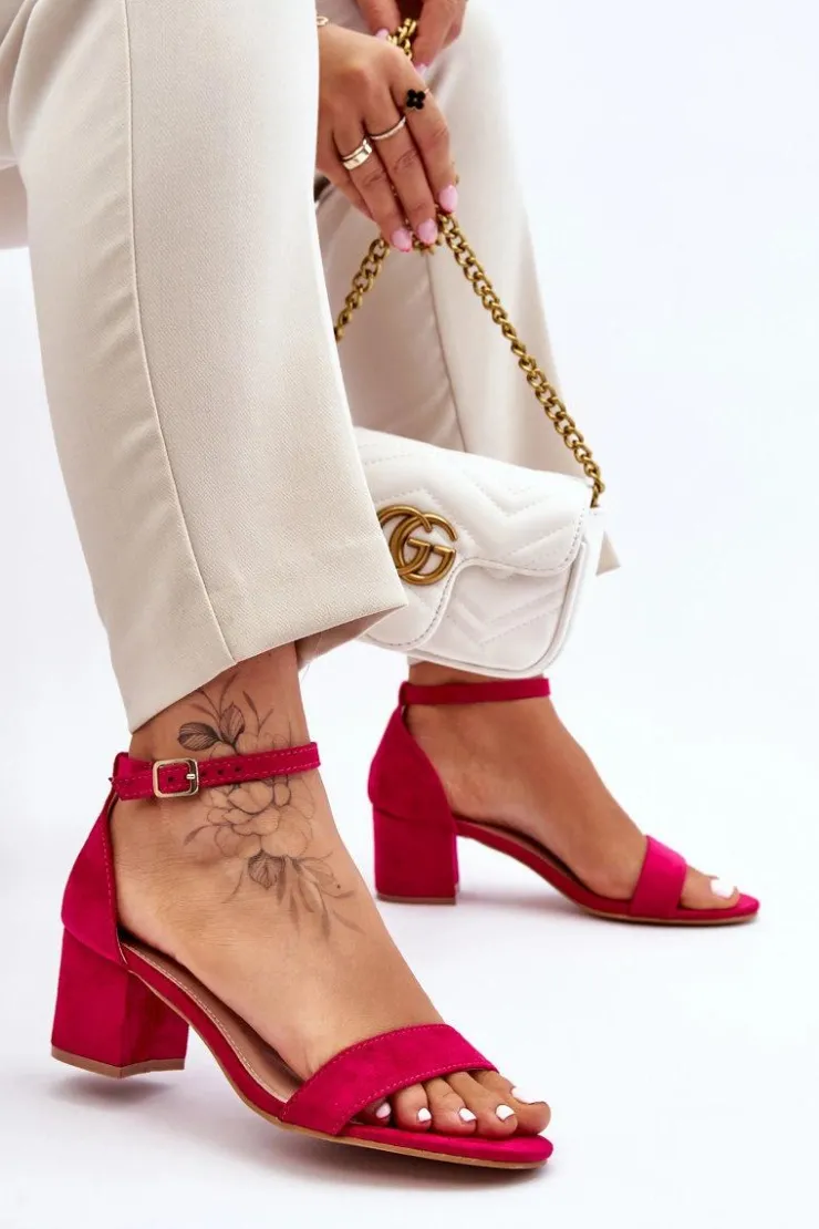 Wyjątkowe sandałki na niewysokim obcasie w postaci stabilnego słupka. Wykonane z przyjemnego w dotyku eko zamszu. Sandałki te posiadają usztywniany zapiętek. Wkładka wykonana z eko skóry zapewni komfortowe użytkowanie. Nosek odkryty, zaokrąglony. Zapinane wokół kostki na regulowany pasek ze sprzączką. Na pewno wykorzystasz je w wielu sytuacjach! Przy wyborze rozmiaru prosimy sugerować się tabelą rozmiarów.