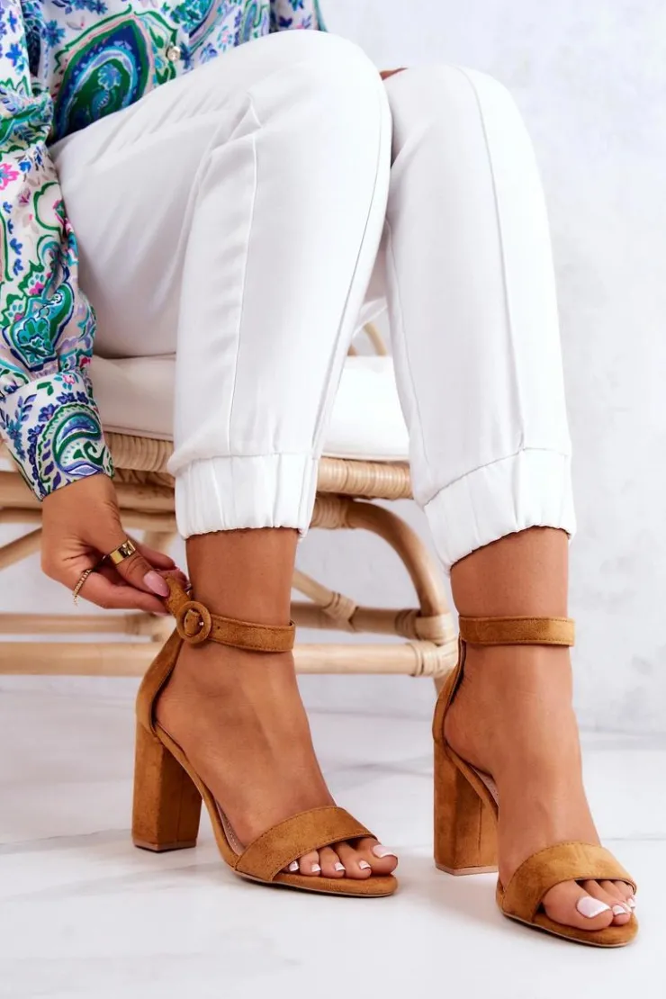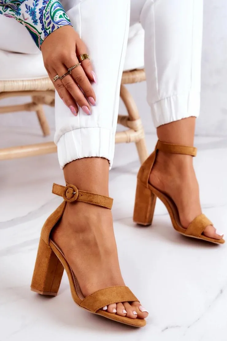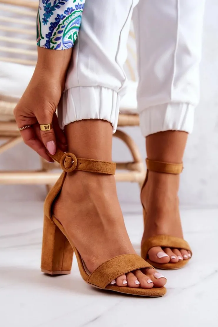 Klasyczne sandały na słupku wykonane z eko zamszu. O Twój komfort zadba miękka wkładka z eko skóry. Ponadczasowy fason, który musi znaleźć się w Twojej garderobie! Posiadają regulowany pasek zapinany na sprzączkę. Koniecznie sprawdź całą naszą kolekcję sandałów! Przy wyborze rozmiaru prosimy sugerować się tabelą rozmiarów.