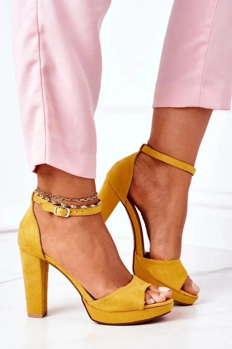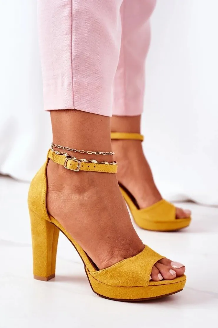Eleganckie sandały na słupku wykonane z eko zamszu. Miękka wkładka z eko skóry oraz wygodny obcas zapewnią komfort. Przy wyborze rozmiaru prosimy sugerować się tabelą rozmiarów.