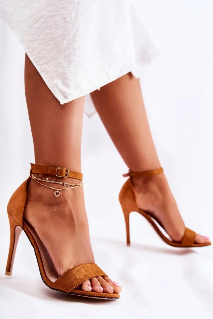 Klasyczne sandały na szpilce wykonane z eko zamszu. Posiadają delikatnie usztywniany zapiętek. Model z odkrytym, zaokrąglonym noskiem. Sandały są zapinane wokół kostki na regulowany pasek ze sprzączką. Miękka wkładka wykonana z eko skóry pozwoli na komfortowe użytkowanie. Te buty idealnie sprawdzą się podczas różnego rodzaju uroczystości. Przy wyborze rozmiaru prosimy sugerować się tabelą rozmiarów.