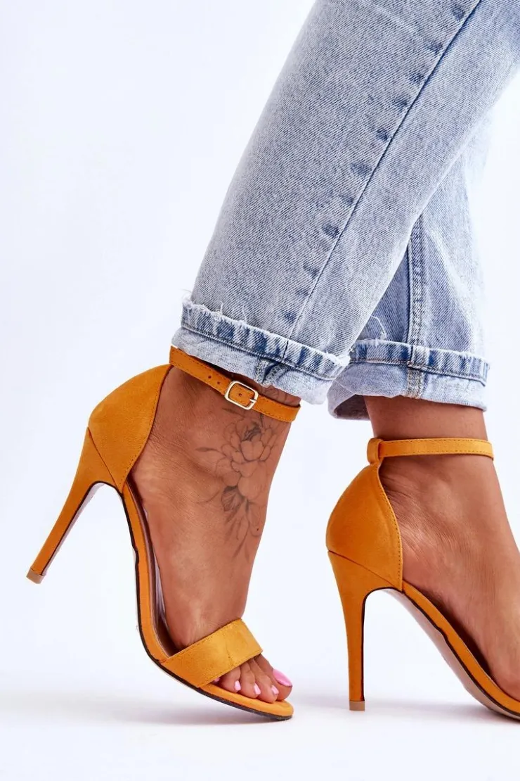 Damskie Boto Zamszowe Sandały Na Szpilce Żółte Liberty