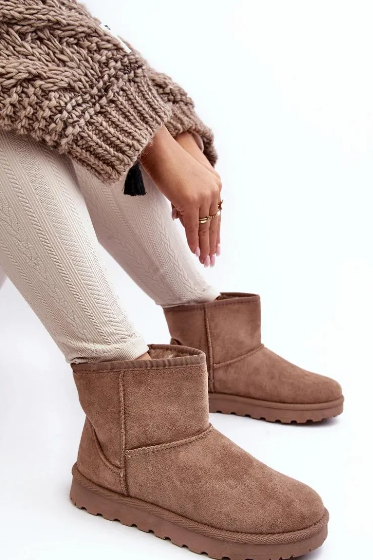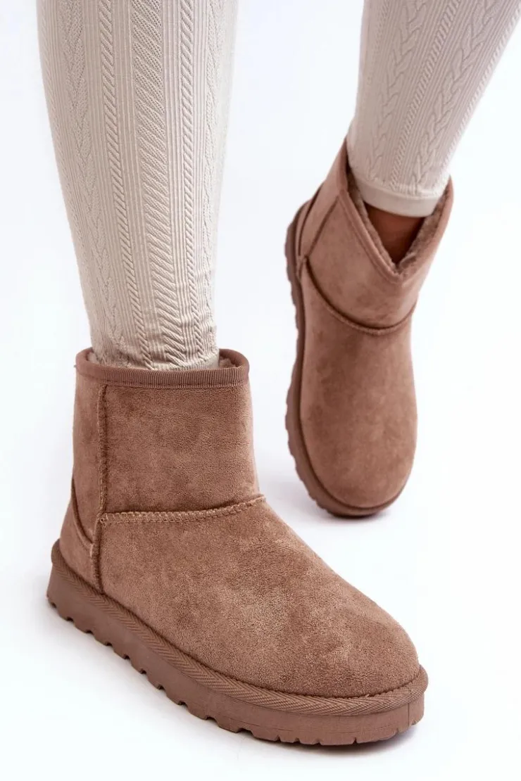 Damskie śniegowce wykonane z eko zamszu. Osadzone na podeszwie z gumowego tworzywa. Cholewka za kostkę. Idealnie sprawdzą się podczas mroźnych dni. Środek ocieplony futerkiem. Ten klasyczny model dopasujesz do wielu stylizacji. Przy wyborze rozmiaru prosimy sugerować się tabelą rozmiarów.