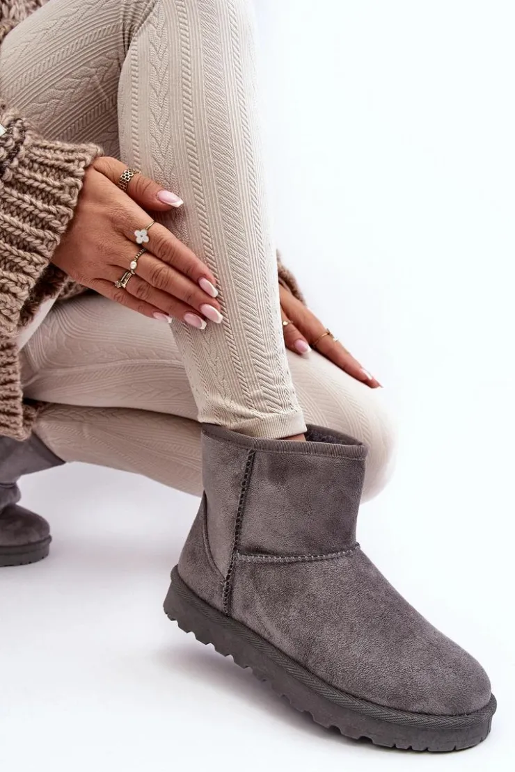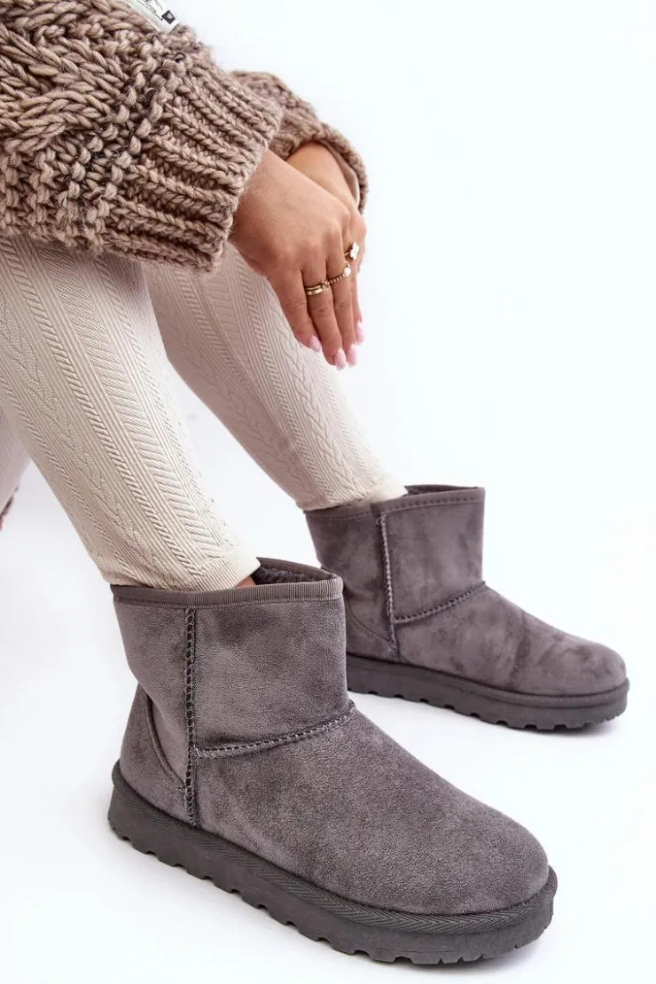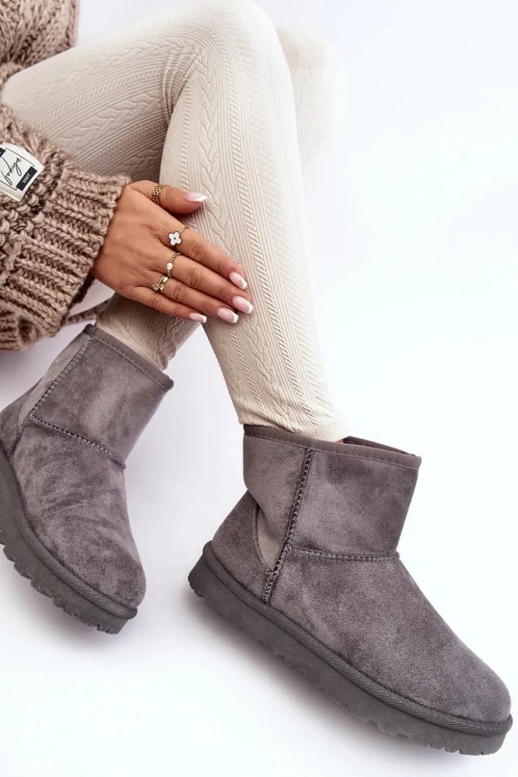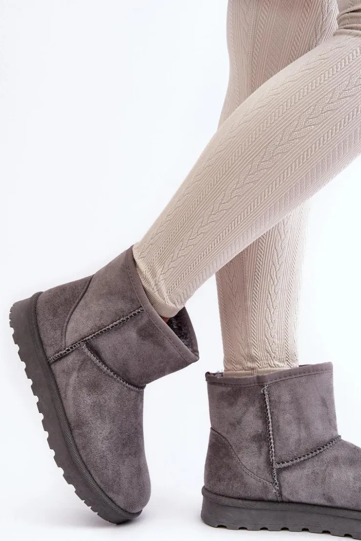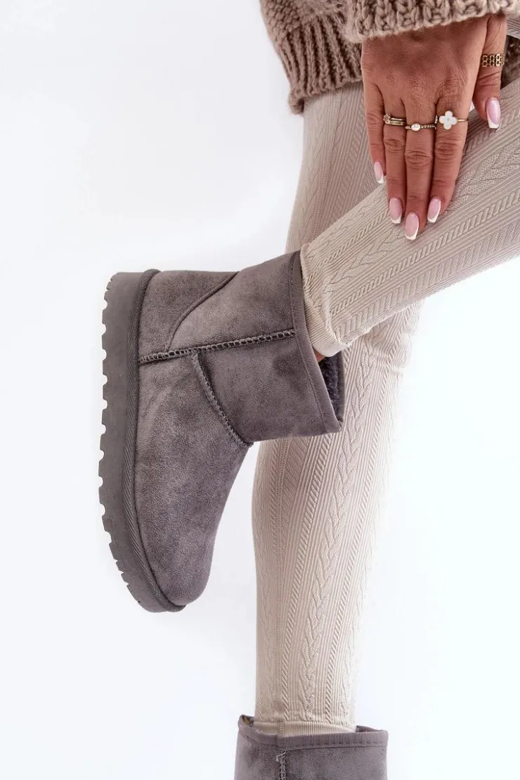Damskie Boto Zamszowe Śniegowce Damskie Ocieplane Szare Nanga
