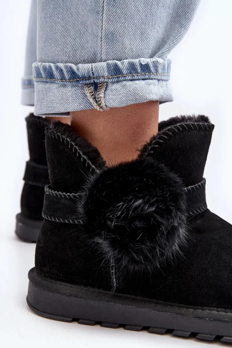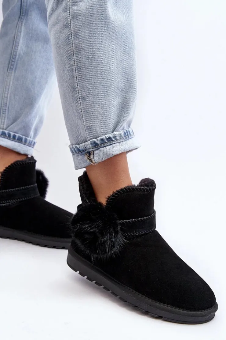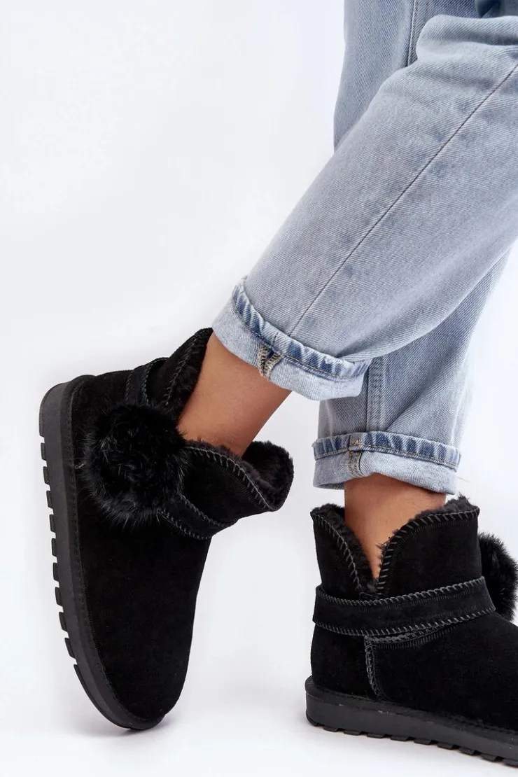Śniegowce damskie wykonane z naturalnego zamszu. Cholewka z wycięciami ozdobiona ściąganym paskiem. Środek ocieplony grubym futerkiem. Cholewka do kostki. Model ten posiada platformę z gumowego tworzywa, która świetnie odizoluje od zimnego podłoża. Koniecznie powinnaś je mieć! Przy wyborze rozmiaru prosimy sugerować się tabelą rozmiarów.