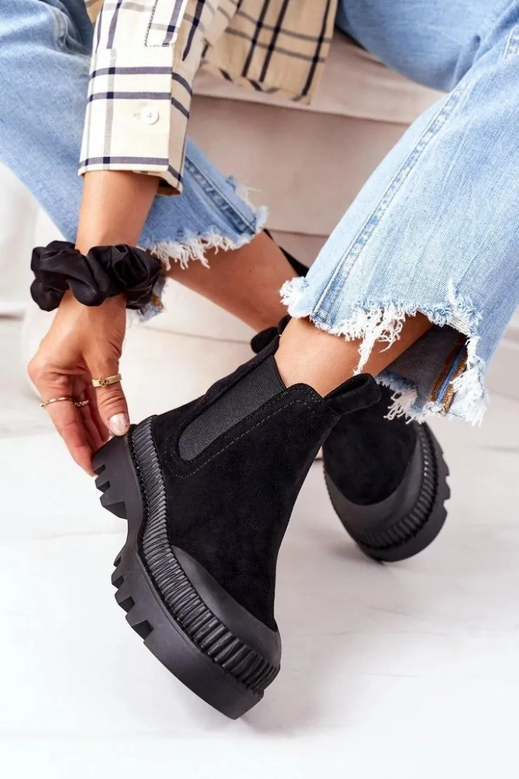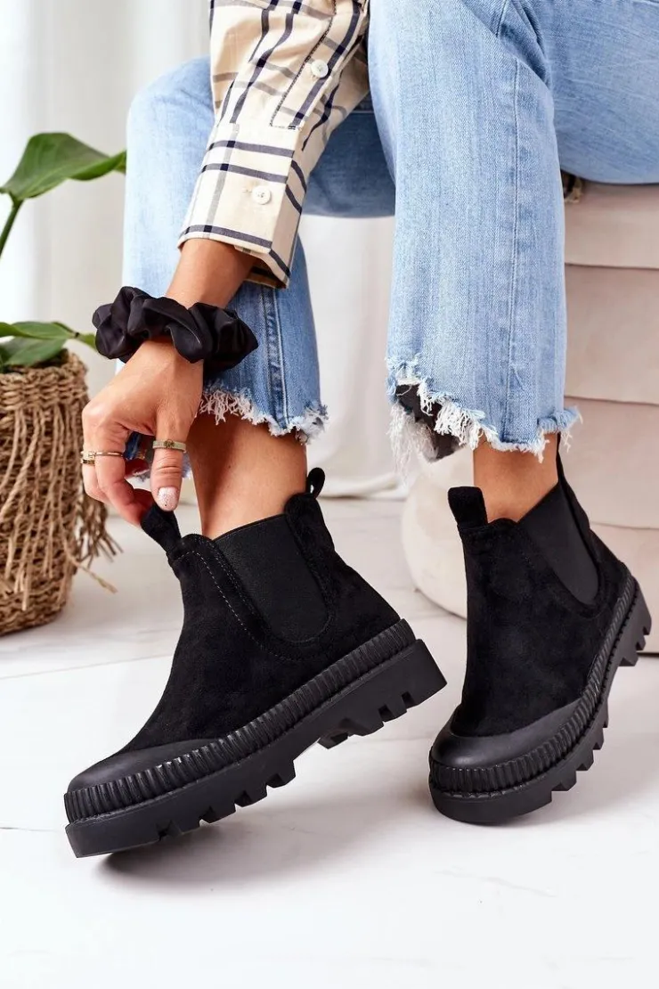 Workery damskie wykonane z eko zamszu. Gumy ściągające zapewnią dopasowanie do stopy oraz wygodę. Przy wyborze rozmiaru prosimy sugerować się tabelą rozmiarów.
