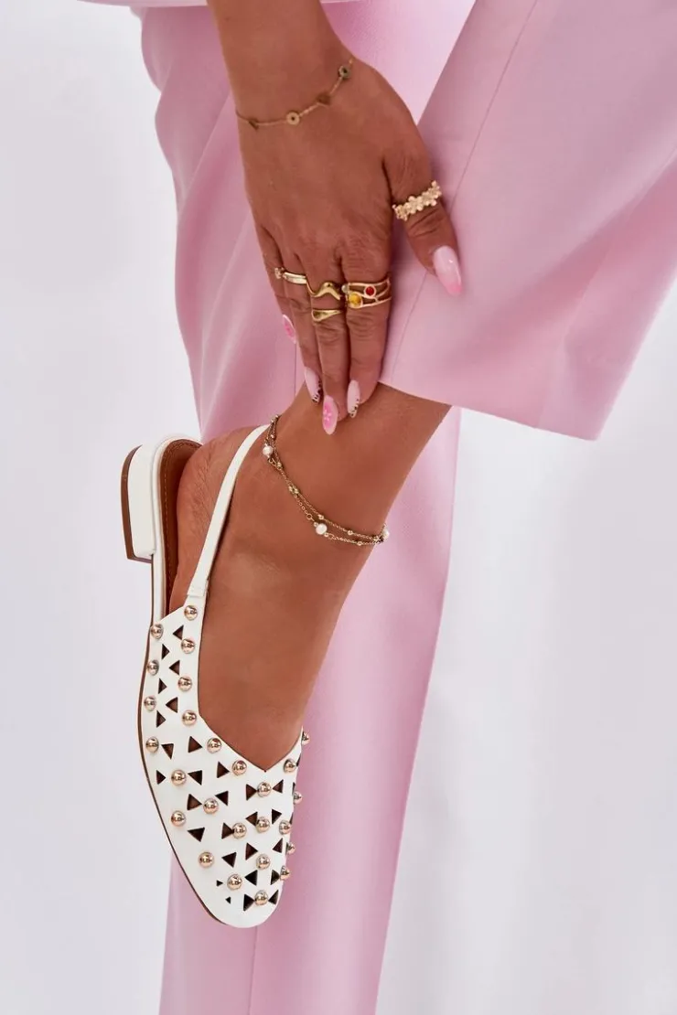 Baleriny damskie ze zdobieniem to połączenie elegancji i komfortu na co dzień. Ażurowy wzór dodaje im lekkości i przewiewności, a odkryte pięty podkreślają letni charakter butów. Osadzone na płaskim obcasie, z zaokrąglonymi noskami, świetnie sprawdzą się zarówno do sukienek, jak i spodni, gwarantując wygodę przez cały dzień. Podczas wyboru rozmiaru prosimy sugerować się tabelą rozmiarów.