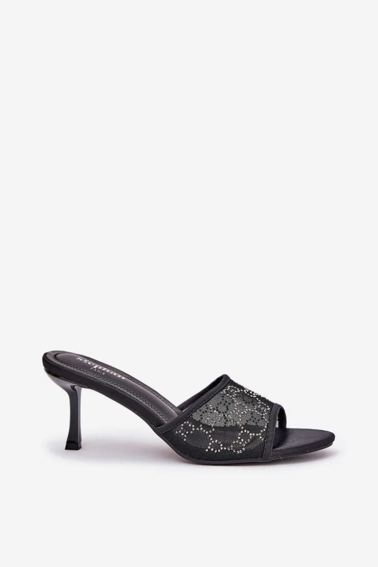 Klapki damskie na obcasie szpilce. Na przodzie, na pasku, znajduje się subtelne zdobienie, które nadaje im wyjątkowego uroku. Miękka wkładka wykonana z eko skóry gwarantuje wygodę przez cały dzień, czyniąc te klapki idealnym wyborem na letnie wyjścia, jak również na bardziej eleganckie okazje. Przy wyborze rozmiaru prosimy sugerować się tabelą rozmiarów.