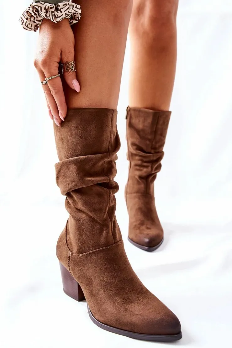 Kozaczki wykonane z zamszowej skóry ekologicznej. Zamek z boku ułatwi zakładanie. Kozaczki zwieńczone zostały noskiem w szpic. Przy wyborze rozmiarów prosimy sugerować się tabelą rozmiarów.
