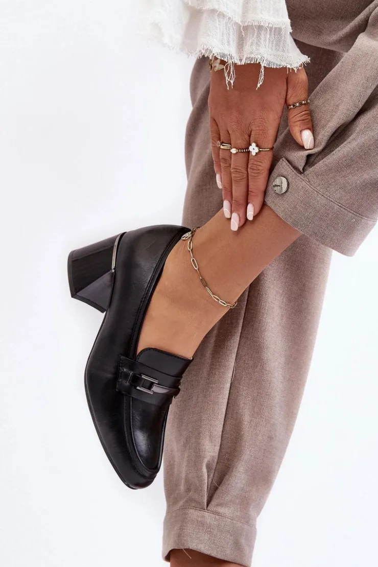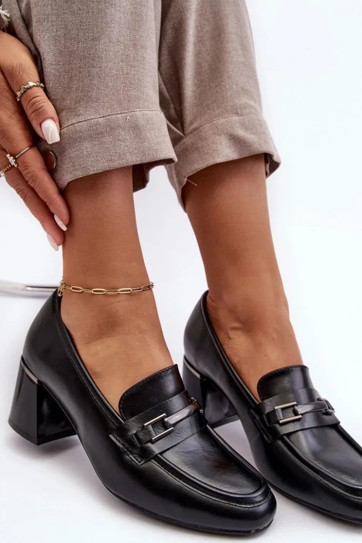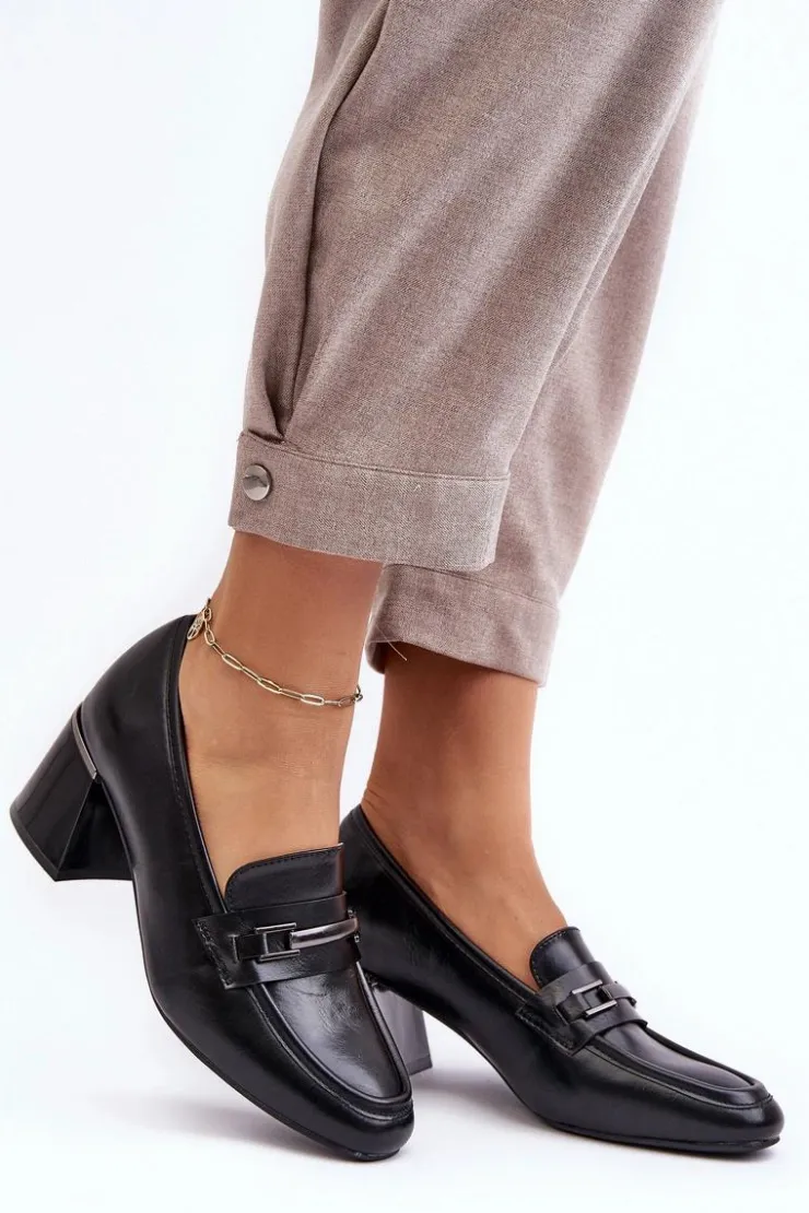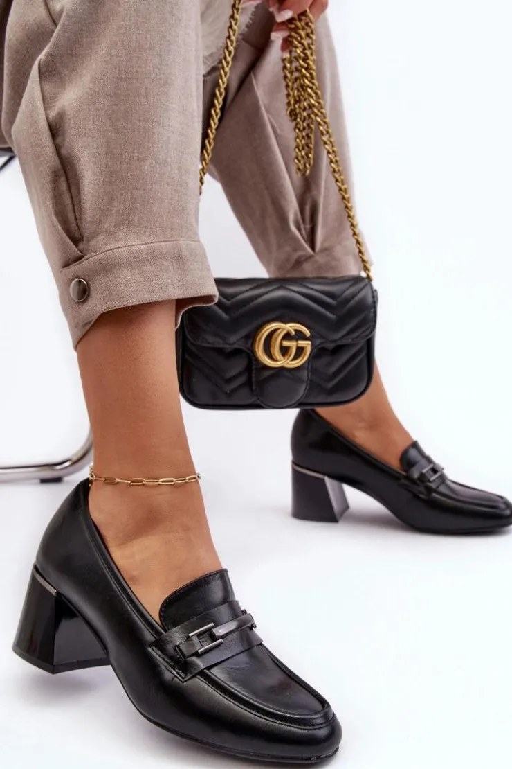 Damskie Buty damskie Vinceza Skórzane Czółenka Na Słupku Czarne Idona