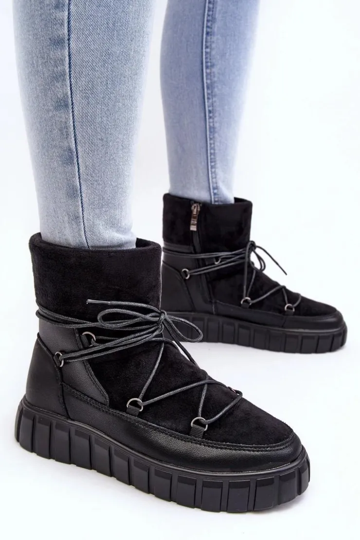 Świetne, damskie śniegowce zostały wykonane ze skóry naturalnej. Zapinane na suwak z boku oraz dodatkowo posiadają sznurówki. Osadzone na platformie. Środek ocieplony kocem obuwniczym. Ten model z pewnością przyda się każdej miłośniczce ciepłego i wygodnego obuwia! Przy wyborze rozmiaru prosimy sugerować się tabelą rozmiarów.