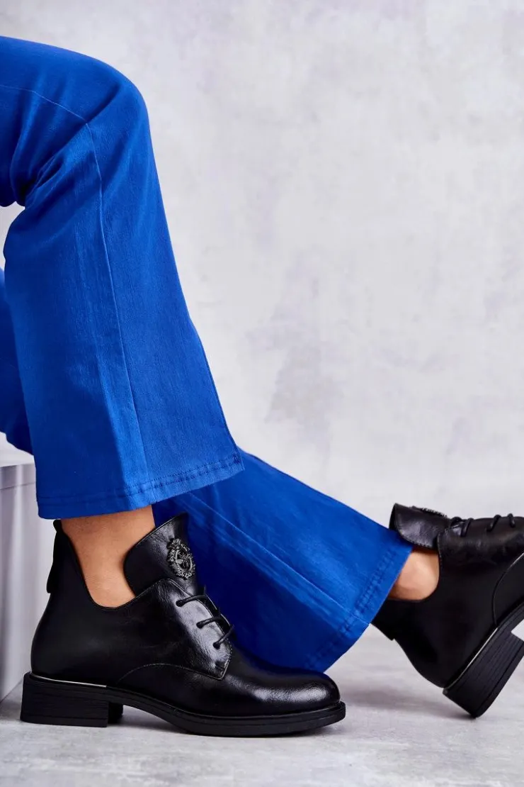 Botki damskie z cholewką wykonaną z eko skóry i modnymi wycięciami. Botki zostały przyozdobione elementem z tworzywa sztucznego. Model klasycznie sznurowany. Buty te zostały osadzone na płaskim obcasie. Środek ocieplony kocem obuwniczym sprawi, że chłodne dni nie będą już takie straszne! Ten model powinien być Twój! Przy wyborze rozmiaru prosimy sugerować się tabelą rozmiarów.