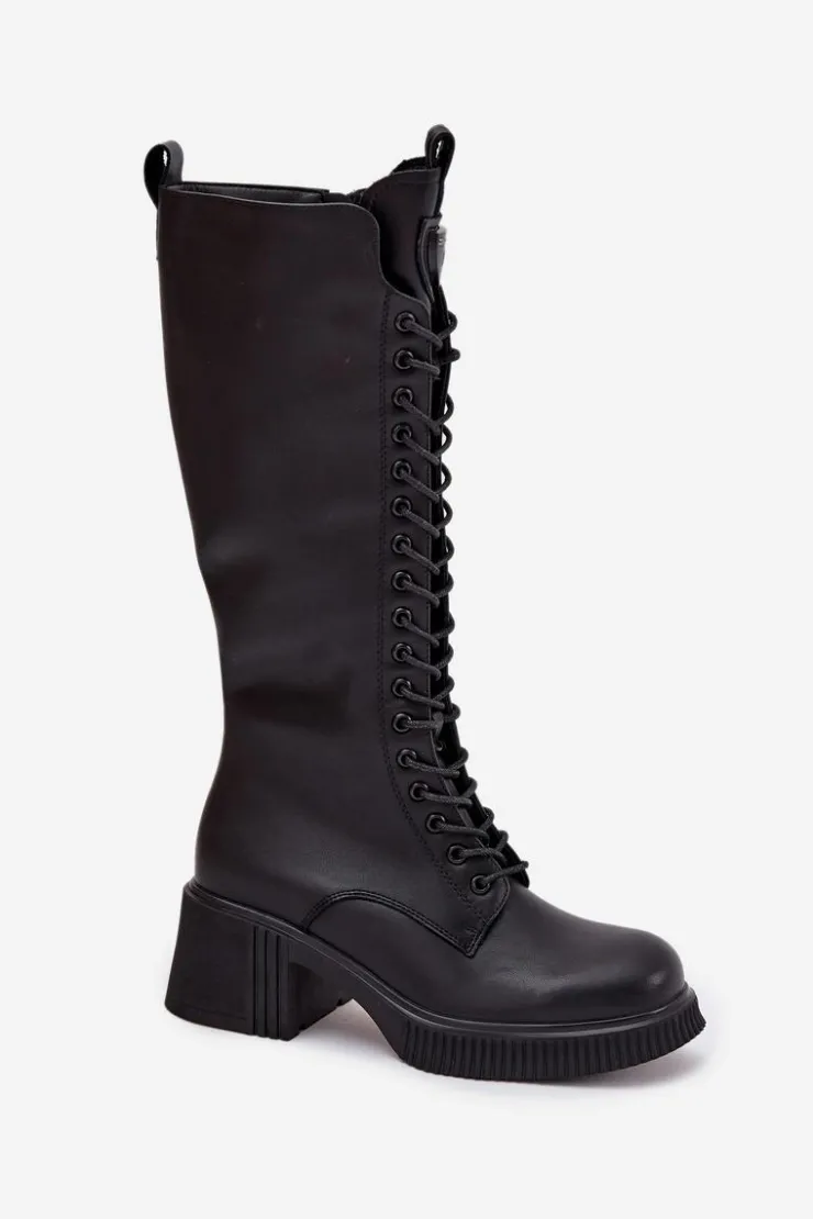 Damskie Buty damskie Vinceza Skórzane Sznurowane Kozaki Na Klocku Ocieplane Vinceza 66804 Czarne