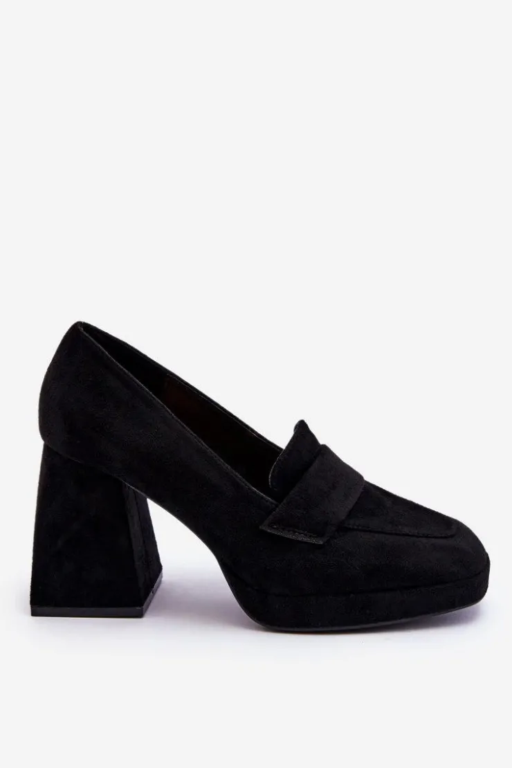 Wyjątkowe, damskie czółenka wykonane z eko zamszu. Posiadają z przodu paseczek z tego samego materiału. Osadzone na masywnym obcasie w postaci klocka oraz platformie. Te cudowne czółenka z pewnością przypadną Ci do gustu. Miękka, eko skórzana wkładka zapewni komfortowe użytkowanie. Przy wyborze rozmiaru prosimy sugerować się tabelą rozmiarów.