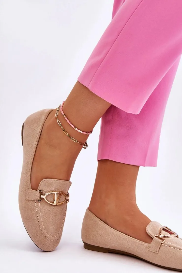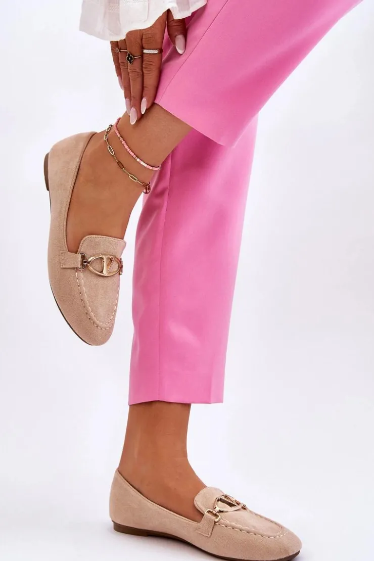 Damskie Buty damskie Vinceza Zamszowe Mokasyny Z Ozdobnym Elementem Beżowe Reed
