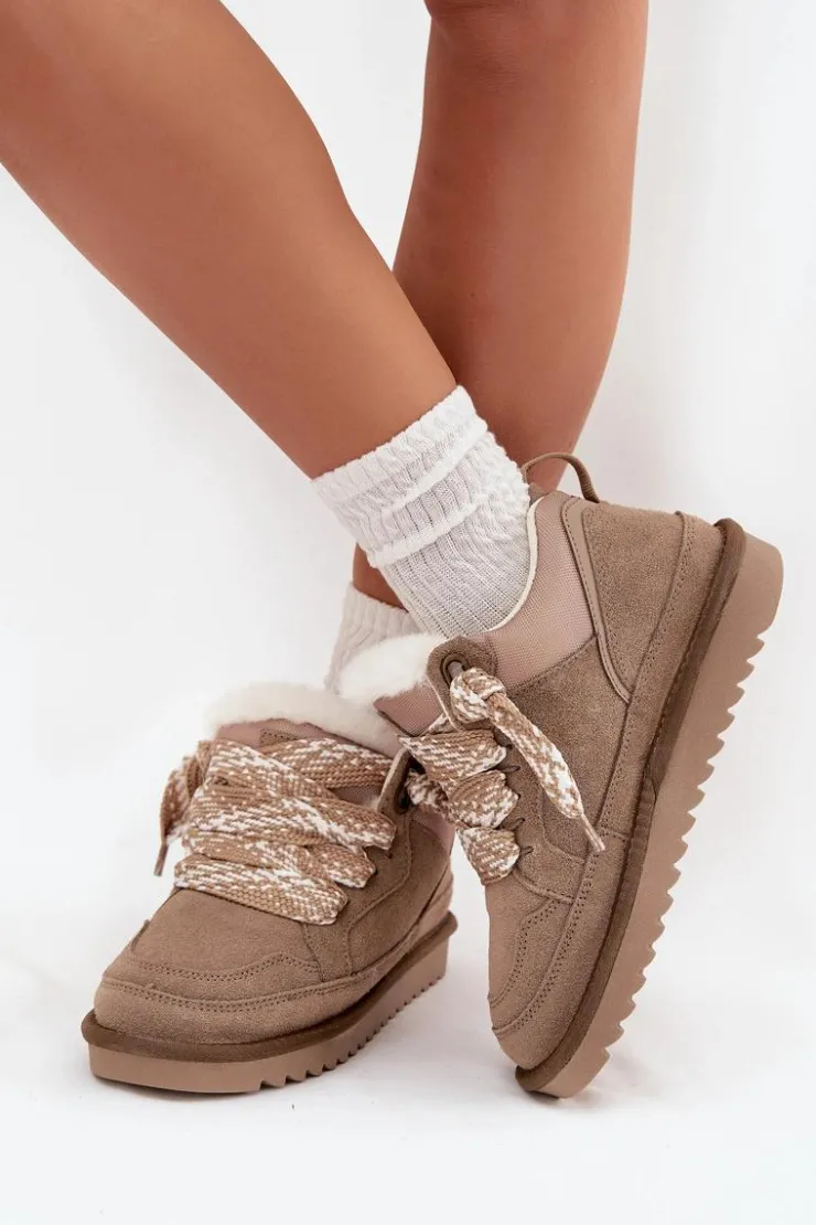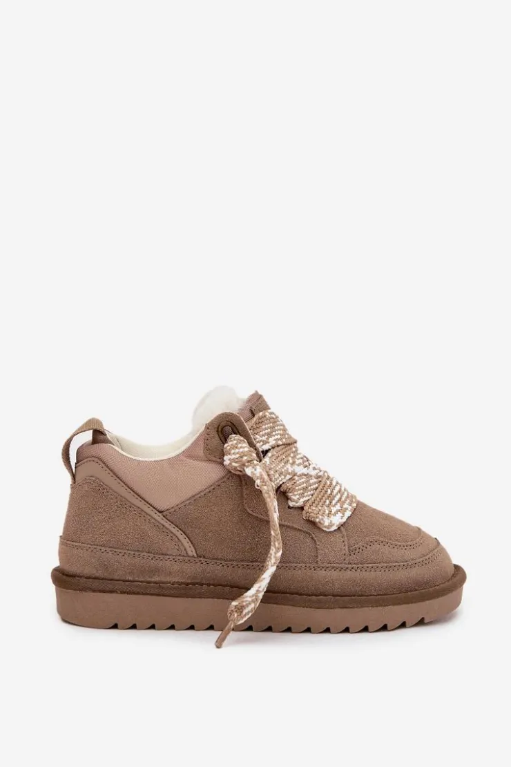 Niskie śniegowce damskie Vinceza z naturalnego zamszu to idealny wybór na zimowe dni. Ocieplone miękkim futerkiem, zapewniają komfort i ciepło nawet przy niskich temperaturach. Grube sznurowanie pozwala na idealne dopasowanie do stopy, a solidna podeszwa z gumowego tworzywa gwarantuje pewny krok na śliskiej nawierzchni. Stylowe, funkcjonalne i gotowe na każdą zimową przygodę. Przy wyborze rozmiaru prosimy sugerować się tabelą rozmiarów.