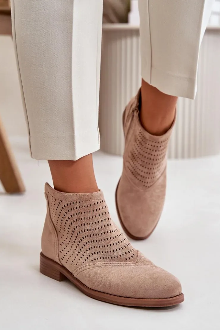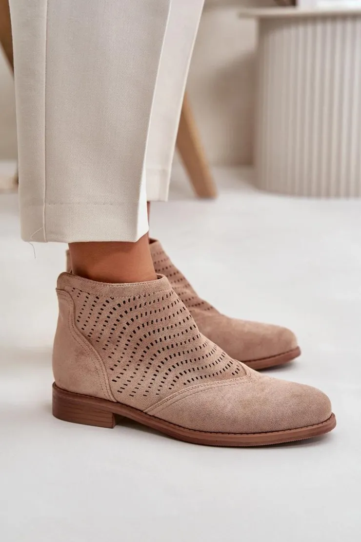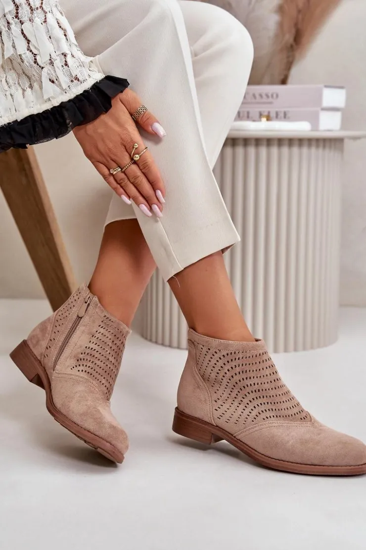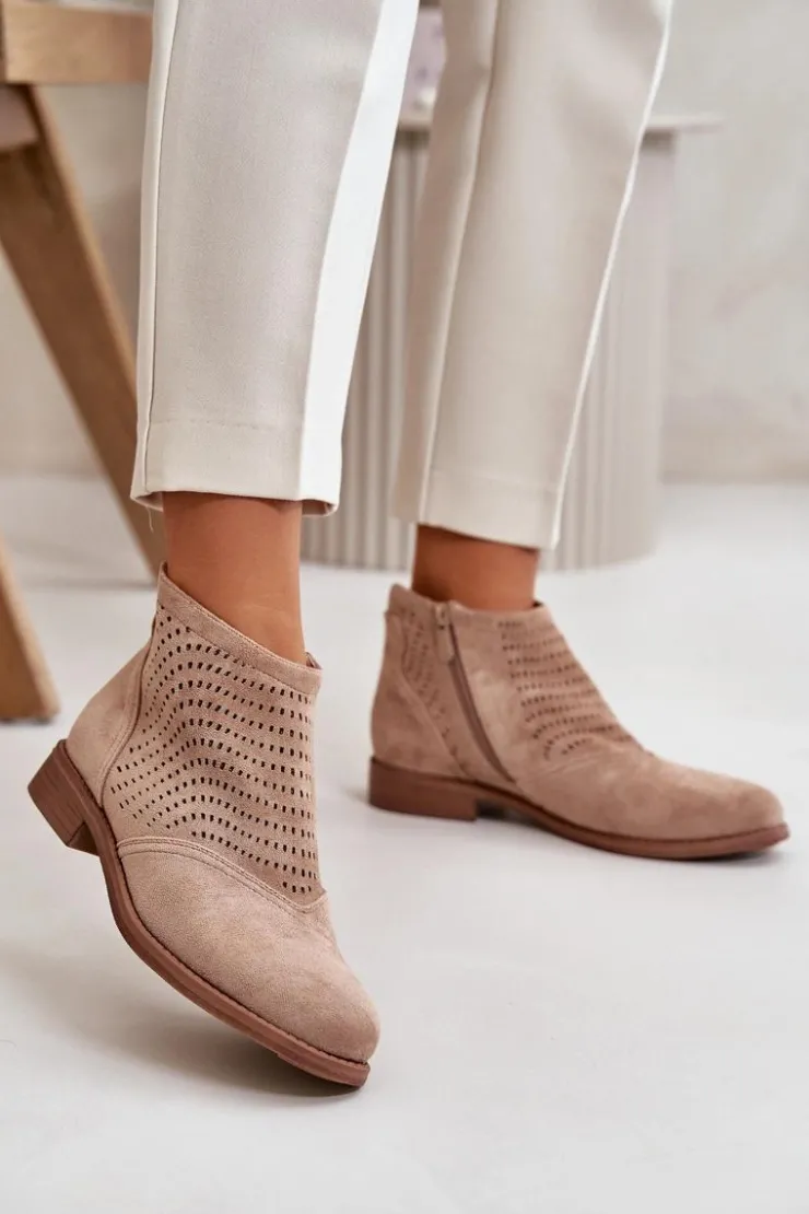 Damskie buty S.Barski Botki Ażurowe|Brązowe I Beżowe Botki*Botki Damskie Na Płaskim Obcasie Ażurowe Beżowe S.Barski HY42-076 Beżowy