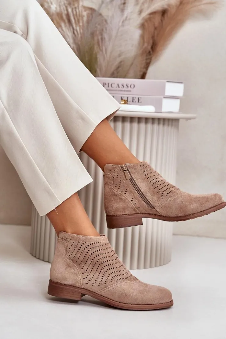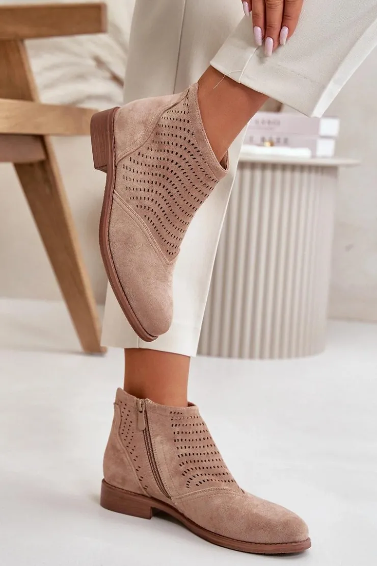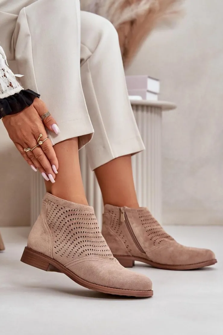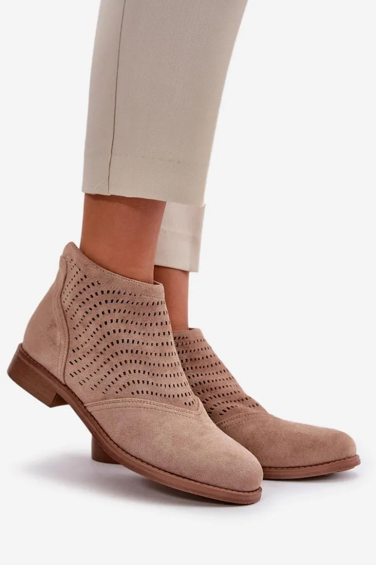 Damskie buty S.Barski Botki Ażurowe|Brązowe I Beżowe Botki*Botki Damskie Na Płaskim Obcasie Ażurowe Beżowe S.Barski HY42-076 Beżowy
