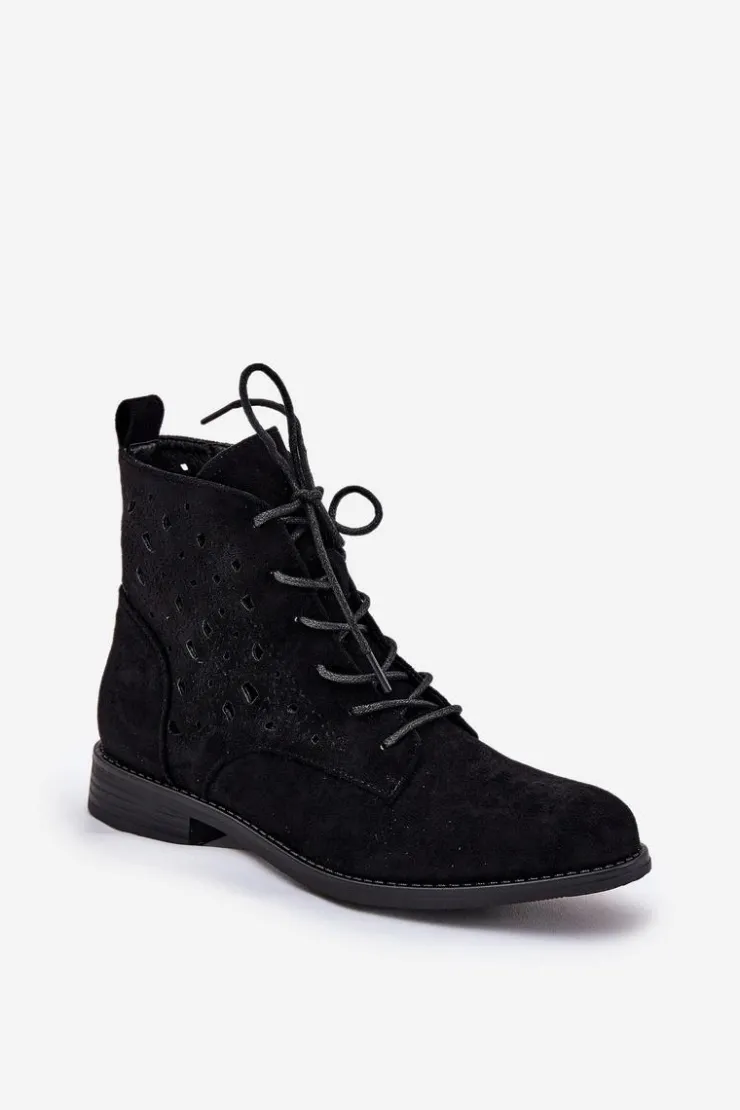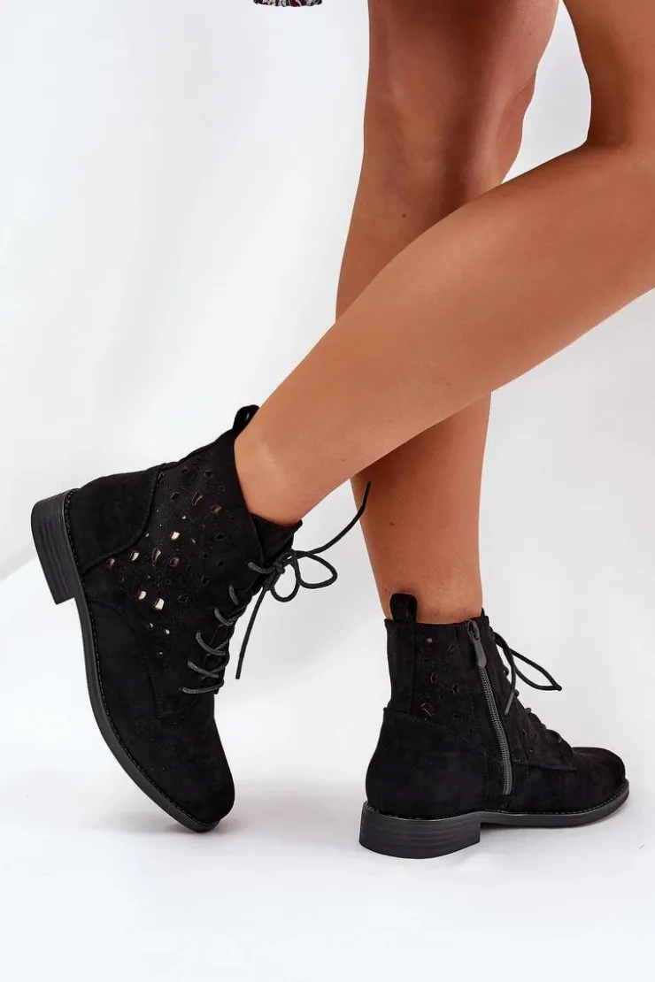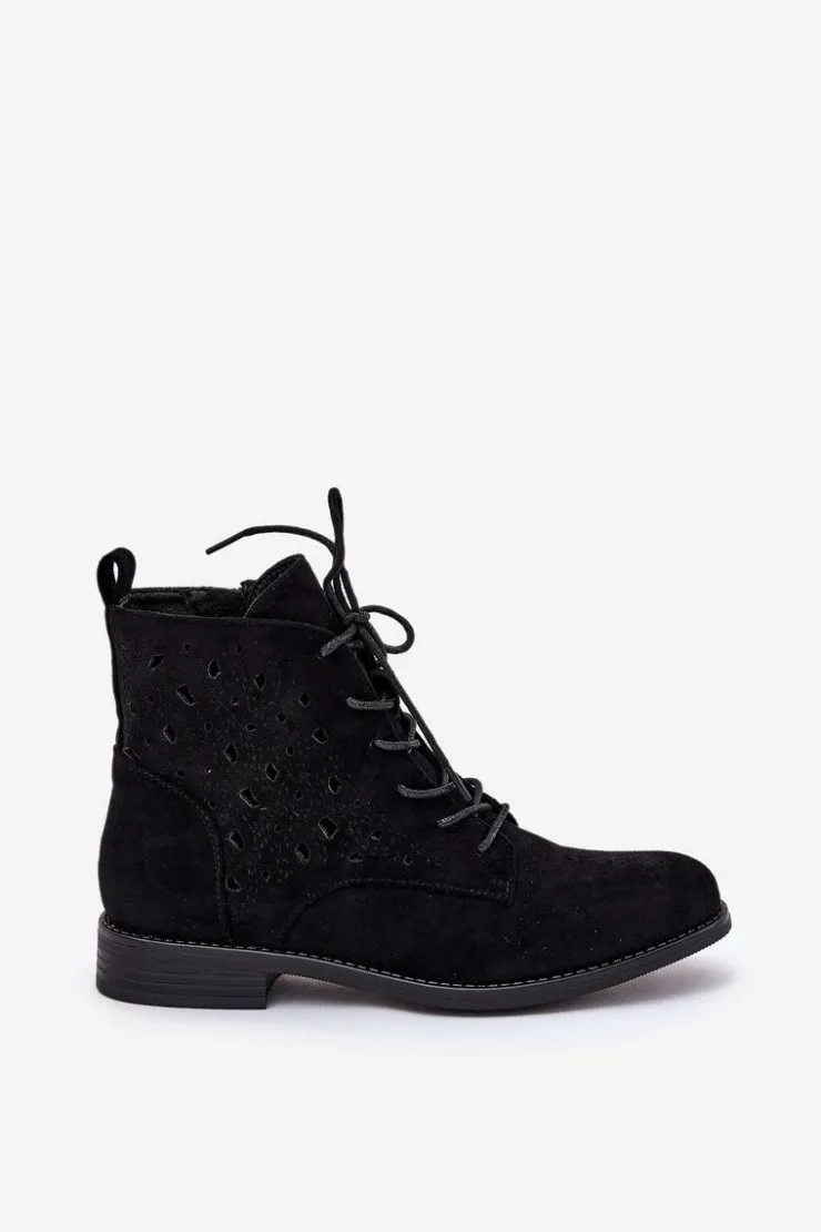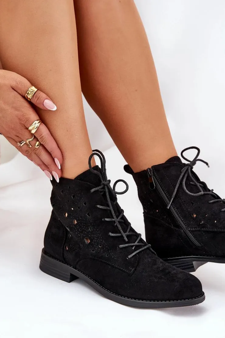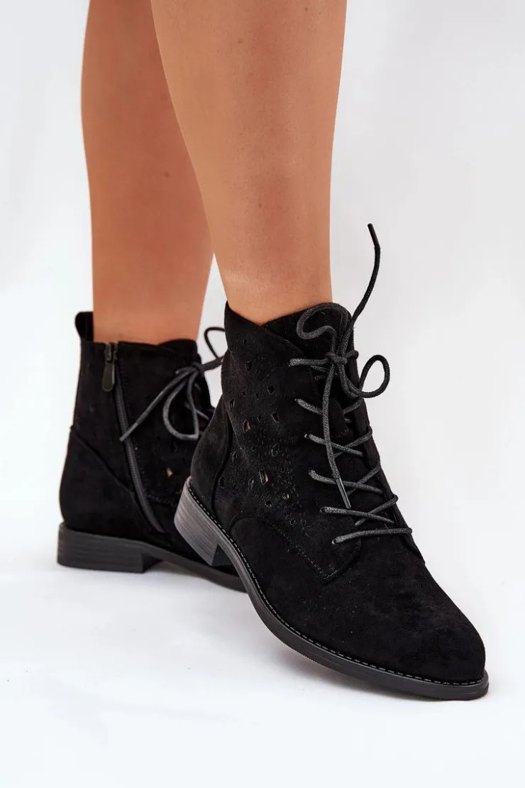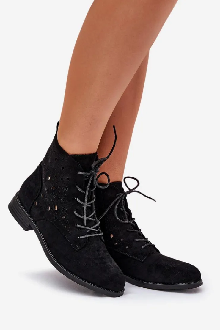Damskie buty S.Barski Botki Ażurowe|Brązowe I Beżowe Botki*Sznurowane Botki Z Ażurowym Wzorem S.Barski HY51-136 Czarne Czarny