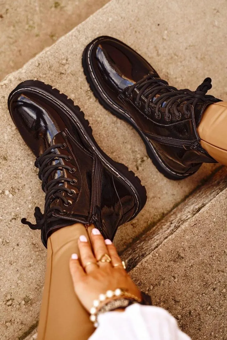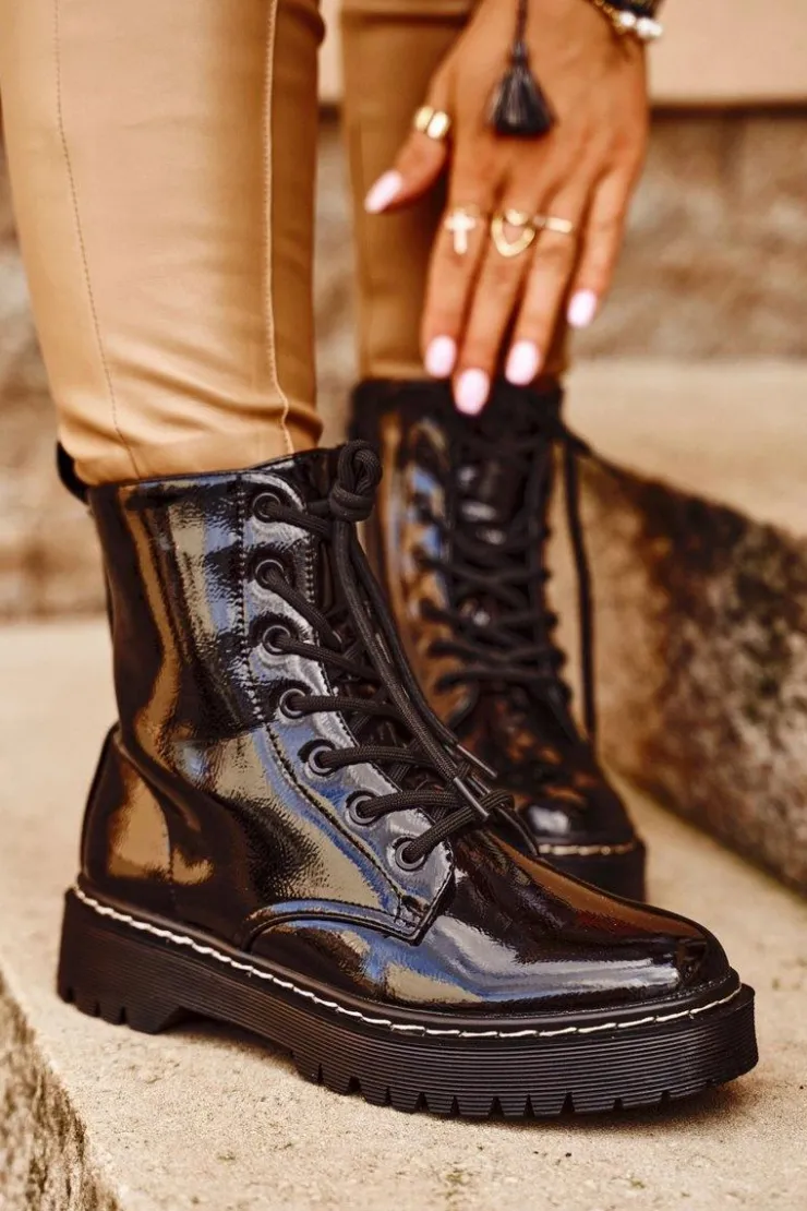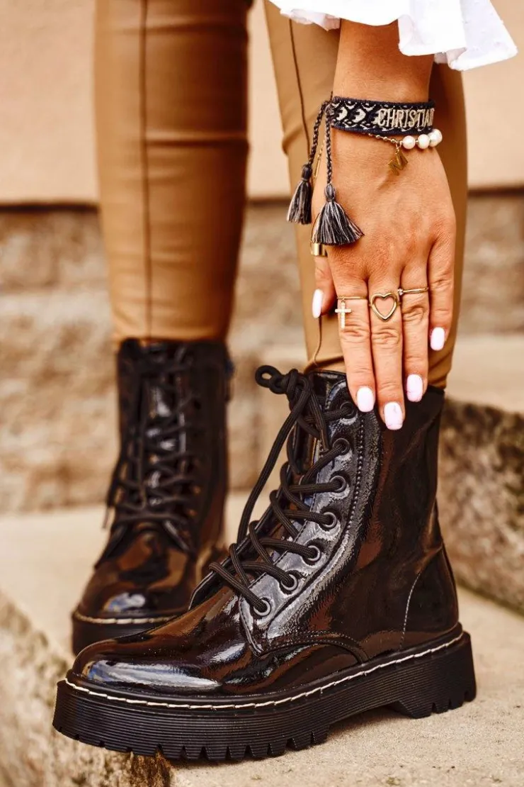 Te cudowne trapery mogą być Twoje! Trapery wykonane z lakierowanej skóry ekologicznej. Wnętrze jak i wkładka wyścielone kocem obuwniczym. Przy wyborze rozmiaru prosimy sugerować się tabelą rozmiarów.