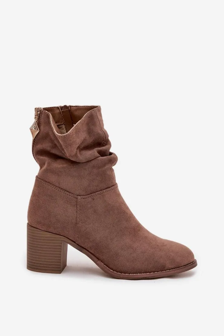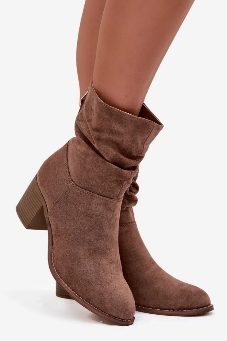 Botki damskie z eko zamszu od marki S.Barski to propozycja, która doskonale sprawdzi się w sezonie jesienno-zimowym. Wykonane z miękkiego, przyjemnego w dotyku materiału, prezentują się bardzo kobieco i modnie. Model został osadzony na stabilnym obcasie typu słupek, który subtelnie wysmukla sylwetkę, a jednocześnie zapewnia wygodę i komfort noszenia nawet przez dłuższy czas. Praktyczne zapięcie na zamek ułatwia zakładanie i zdejmowanie butów, co czyni je funkcjonalnym wyborem na co dzień. Charakterystycznym elementem jest marszczona cholewka, która dodaje całości oryginalności. To model, który doskonale uzupełni zarówno codzienne stylizacje ze spodniami czy legginsami, jak i bardziej kobiece zestawy z sukienką czy spódnicą. Przy wyborze rozmiaru prosimy sugerować się tabelą rozmiarów.