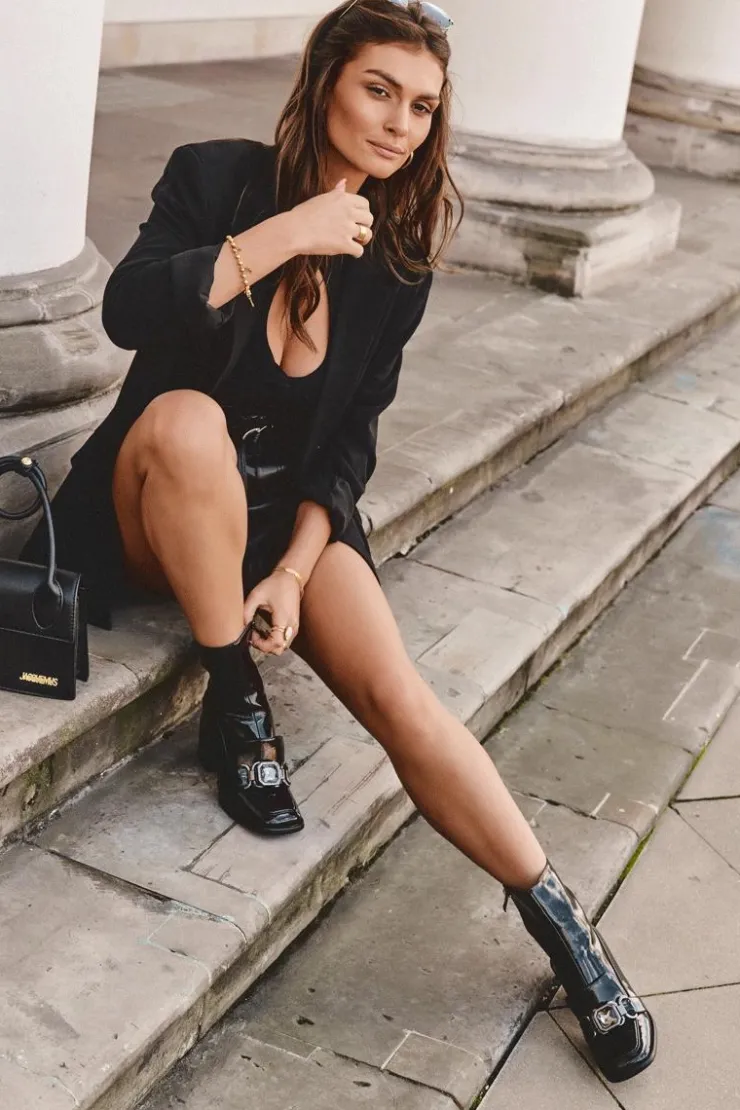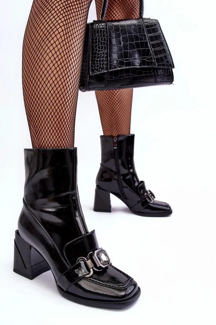 Botki damskie osadzone na masywnym obcasie. Wykonane z eko skóry. Na pasku z przodu znajduje się ozdoba. Noski w kwadrat. Środek ocieplony kocem obuwniczym. Miękka wkładka zapewni komfortowe użytkowanie obuwia. Dodatkowo zapiętek jest usztywniony. Przy wyborze rozmiaru prosimy sugerować się tabelą rozmiarów.