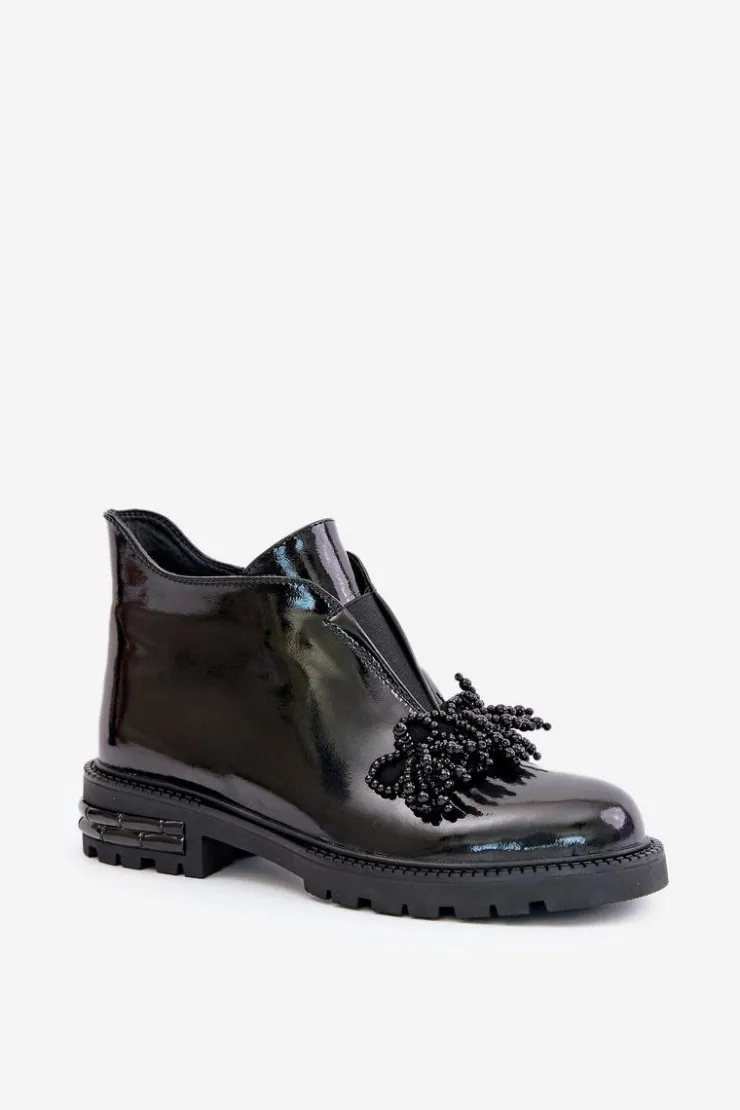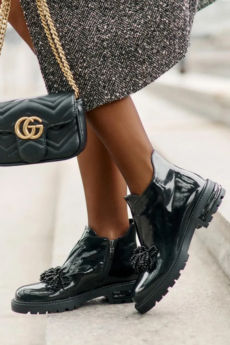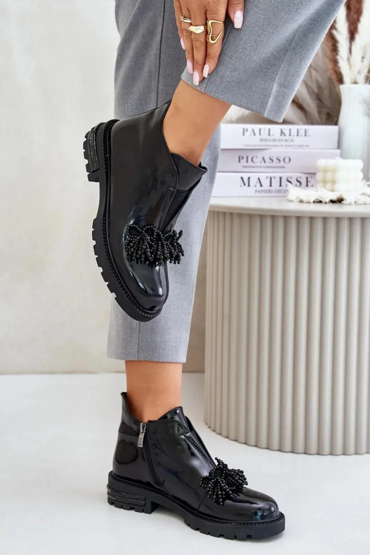 Eleganckie, niskie botki wykonane z naturalnej skóry to doskonała propozycja na chłodniejsze dni. Model ocieplany, zapewnia ciepło i komfort noszenia. Zapinane na zamek. Ozdoba z przodu nadaje szykownego charakteru. Zaokrąglone noski oraz płaski obcas gwarantują wygodę, czyniąc te botki idealnym wyborem do codziennych, jak i bardziej eleganckich stylizacji. Przy wyborze rozmiaru prosimy sugerować się tabelą rozmiarów.